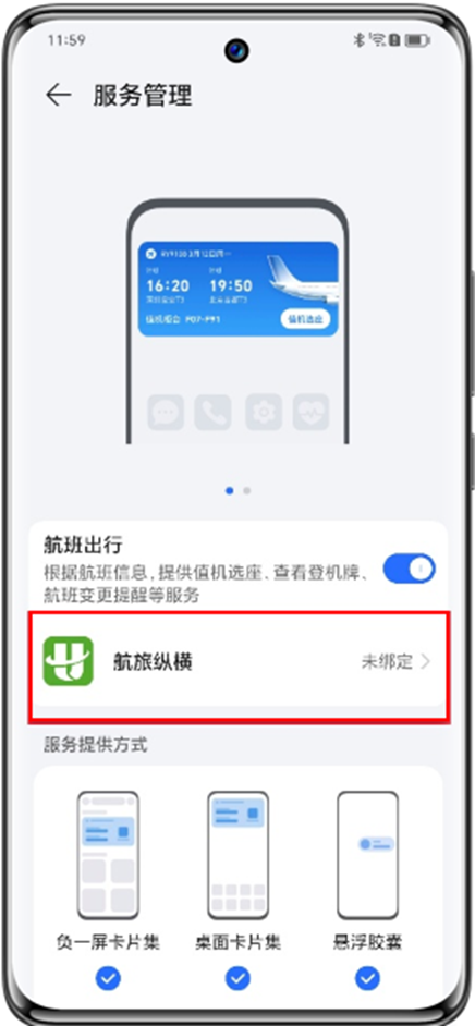 - 确认您是否打开了“航班出行”功能,进行了航旅纵横的绑定;
