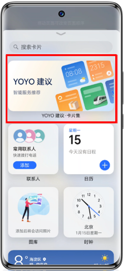 方法2:设置>荣耀AI & YOYO/智慧助手>YOYO建议>添加”YOYO建议“到桌面(按住卡片,可选择“显示小尺寸卡片”移动到手机主桌面)。