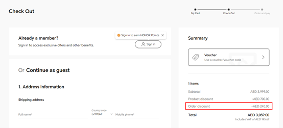| قسيمة للحصول على HONOR Pad X8 بـ 1 درهم فقط | 1 | من قام بالاشتراك بنجاح في النشرة الإخبارية من متجر HONOR الإلكتروني من 1/12/2023 إلى 31/12/2023 | 1/14/2024 |