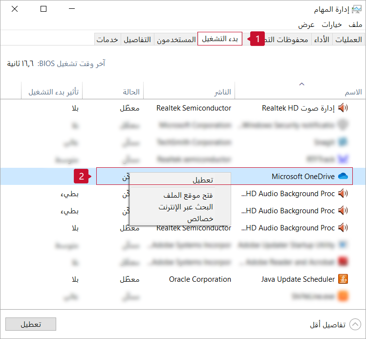تعطيل برنامج بدء التشغيل غير الضروري