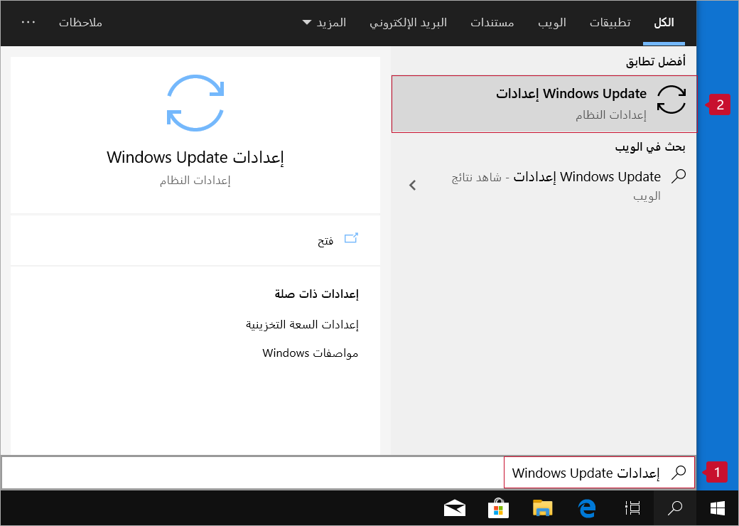 حاول تحديث Windows لحل مشكلة شاشة الموت الزرقاء. على شريط المهام، ابحث عن "تحديث" وانقر على إعدادات Windows Update. انقر على التحقق من وجود تحديثات.