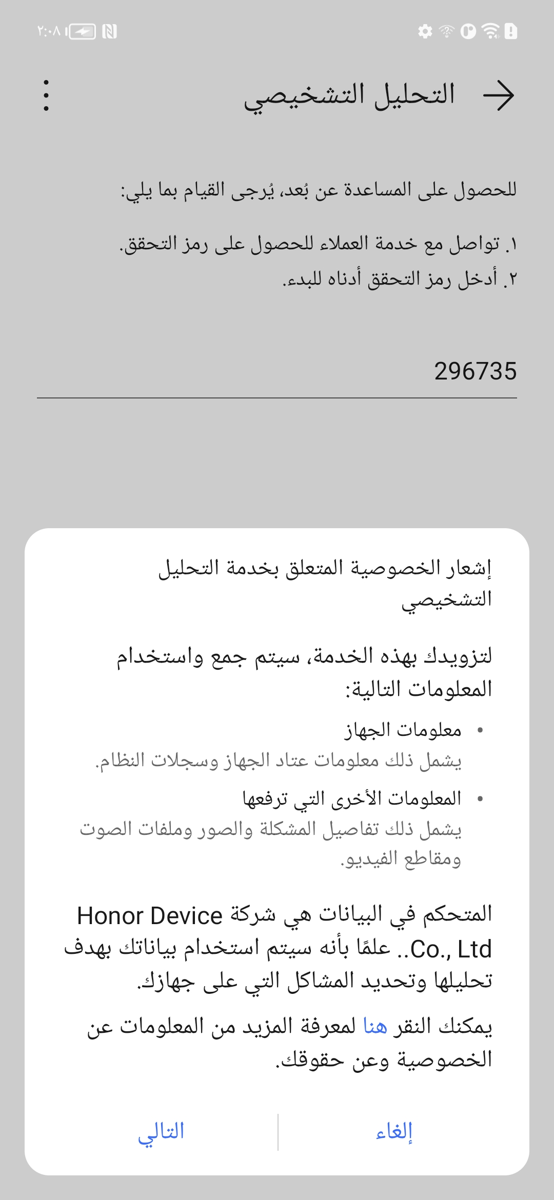 3. اتصل بالخط الساخن لخدمة العملاء واطلب من موظفي خدمة الخط الساخن تزويدهم برمز التحقق الذي يبدأ التشخيص عن بعد.