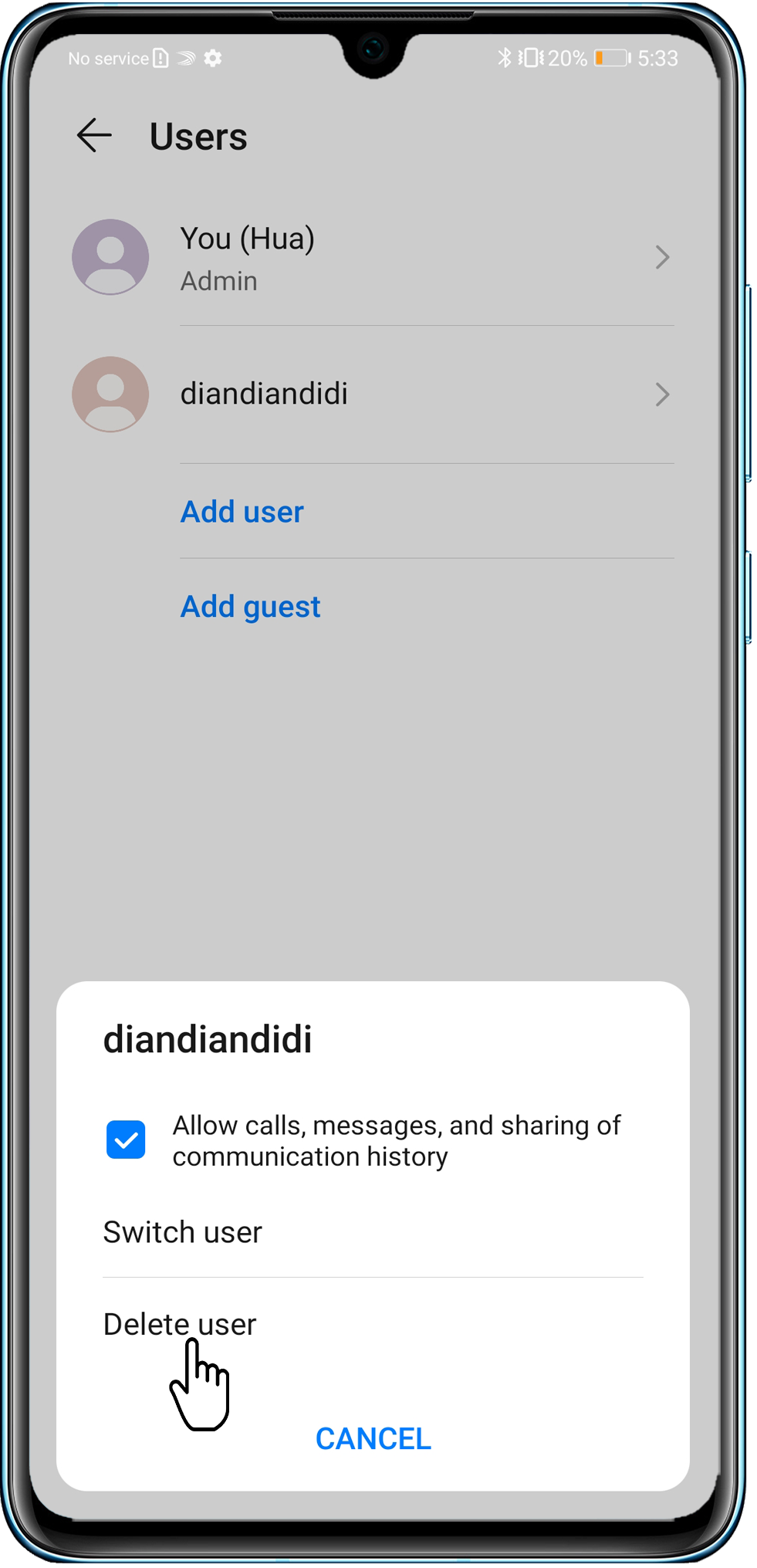 - Open Settings, search for and access Users, and see if there are created sub-user accounts. You can delete sub-user accounts you no longer need by touching a sub-user name and touching Delete user.