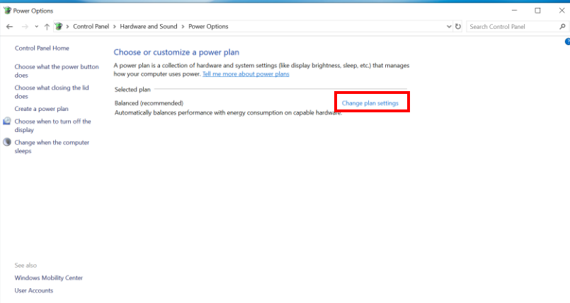 Click Change plan settings.