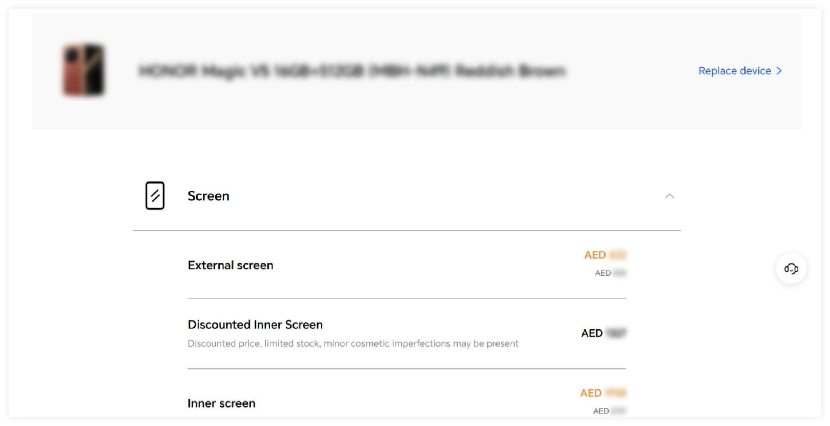 *If the spare parts price for the Discounted Screen Assembly or Screen-only is not displayed under the screen section, it means that the corresponding model does not support this service.