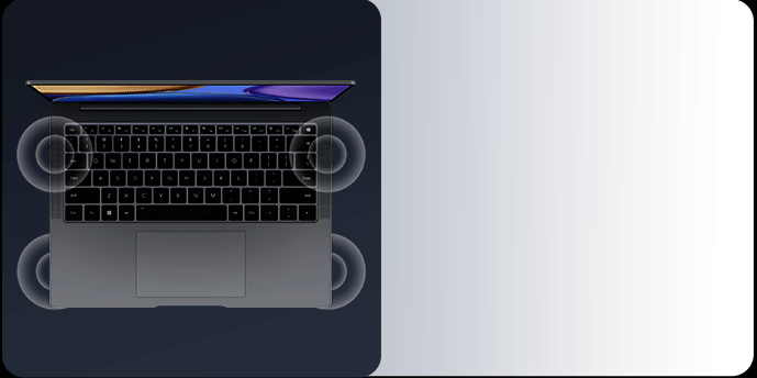 4 динамика для воспроизведения высоких и низких частот по обеим сторонам клавиатуры