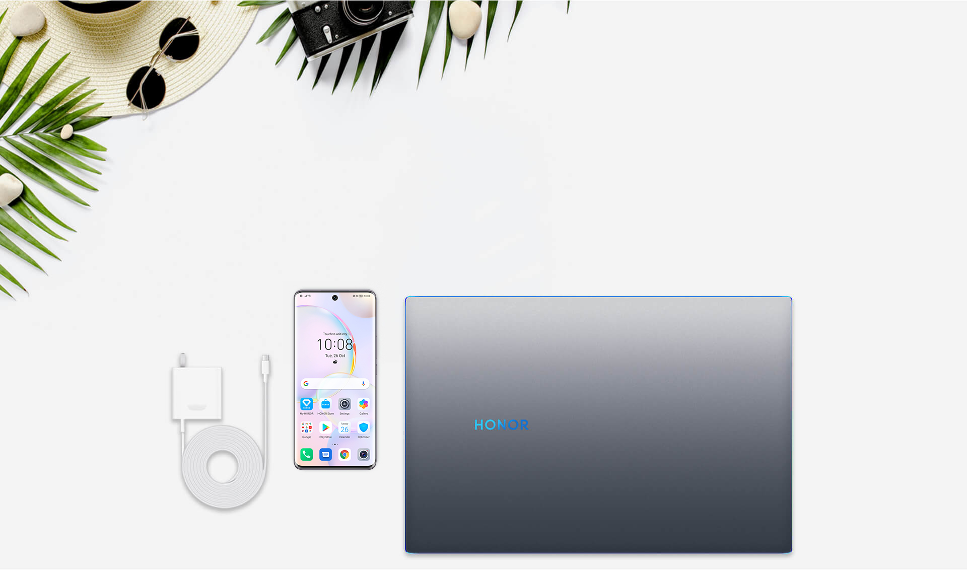 HONOR MagicBook оснащен зарядным устройством TYPE-C 65 Вт с функцией быстрой зарядки, что позволяет пополнить батарею вашего HONOR MagicBook 14 более чем на 44% всего за 30 минут8. Компактное зарядное устройство Type-C 65 Вт с функцией быстрой зарядки подходит как для ноутбука, так и для смартфона, что очень удобно в дороге или путешествии.