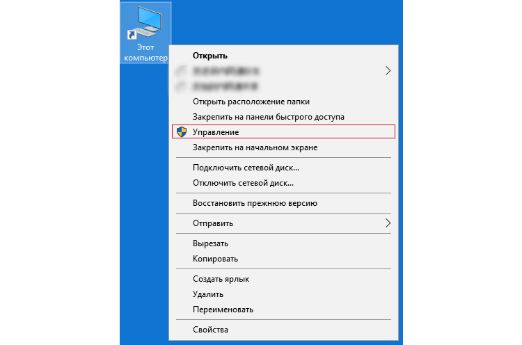 1. Правой кнопкой мыши нажмите Этот компьютер и выберите Управление.