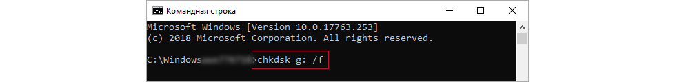 3. Если диск обозначен буквой G, введите команду "chkdsk g: /f" и нажмите на клавишу Enter. После завершения проверки вы сможете использовать диск.