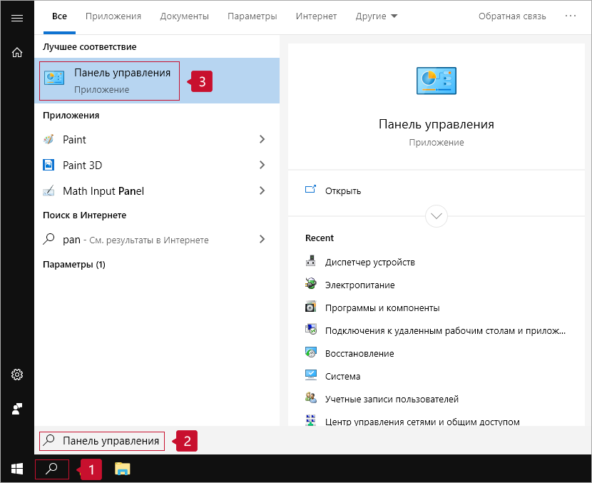 1. В строке поиска введите «панель управления», затем нажмите Панель управления.