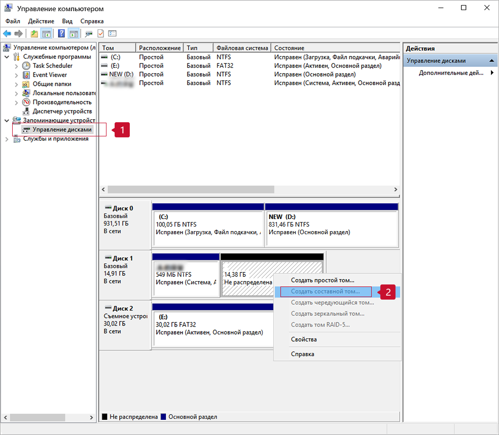 3. Правой кнопкой мыши нажмите на съемный диск, затем нажмите Создать простой том.