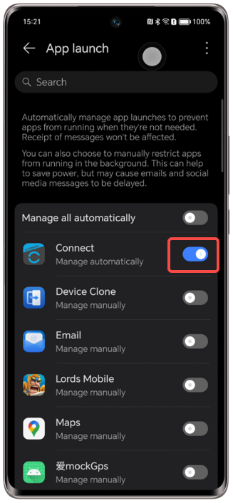 - Acceda a la pantalla de tareas recientes y presione el ícono del candado para bloquear la aplicación Connect.