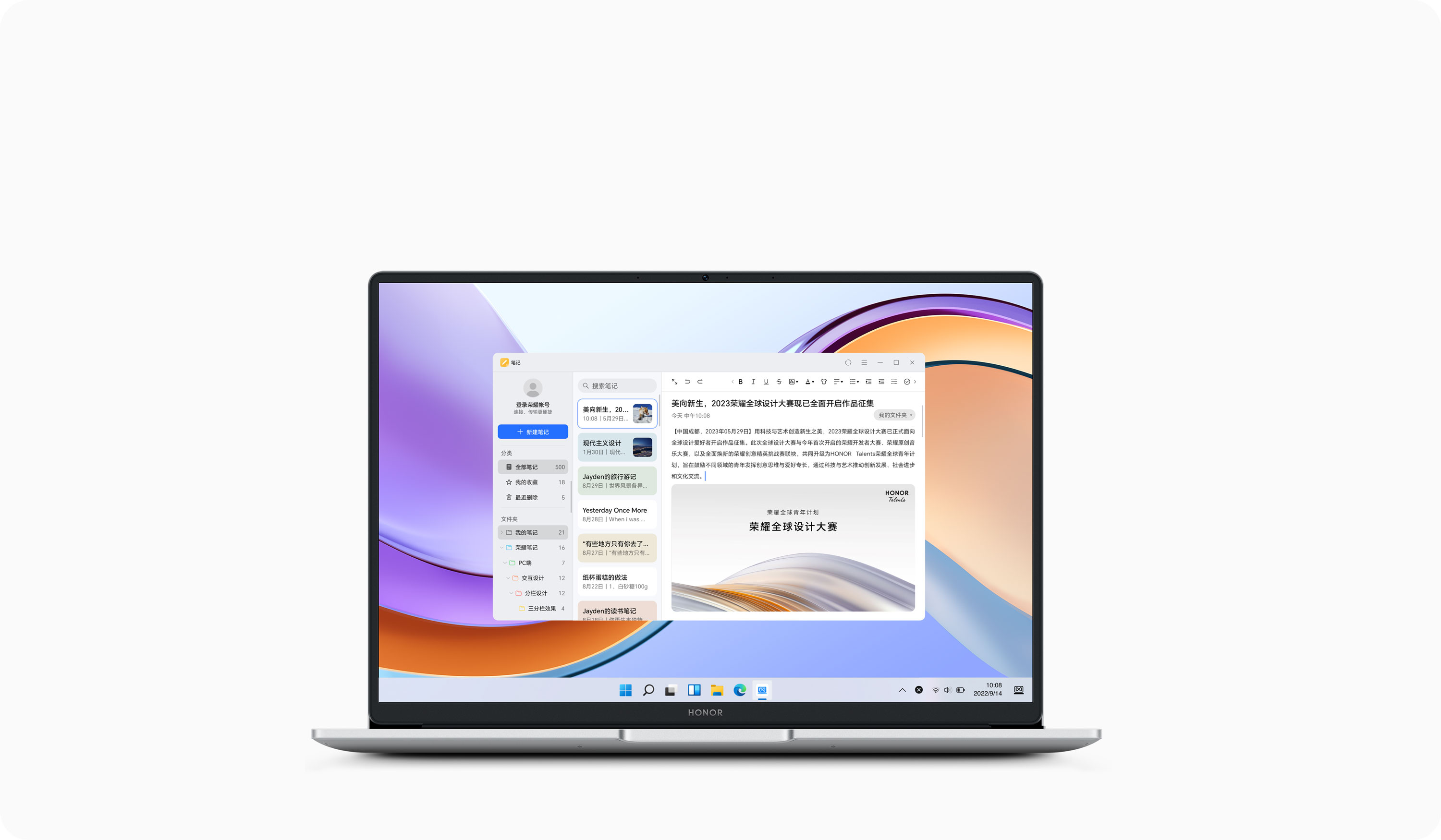 摆脱数据线的束缚,荣耀笔记本、手机、平板通过荣耀分享,实现文件、图片、视频快速互传,荣耀笔记本之间分享和传输时,其他后台任务正常联网,不打断才是真本领。