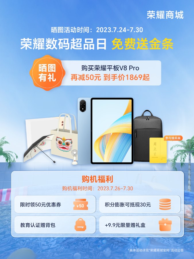1、保存下方活动图,在小红书晒图并@荣耀商城@荣耀官方福利官,添加有效话题#荣耀商城数码超品日,笔记至少保留到8月5日。