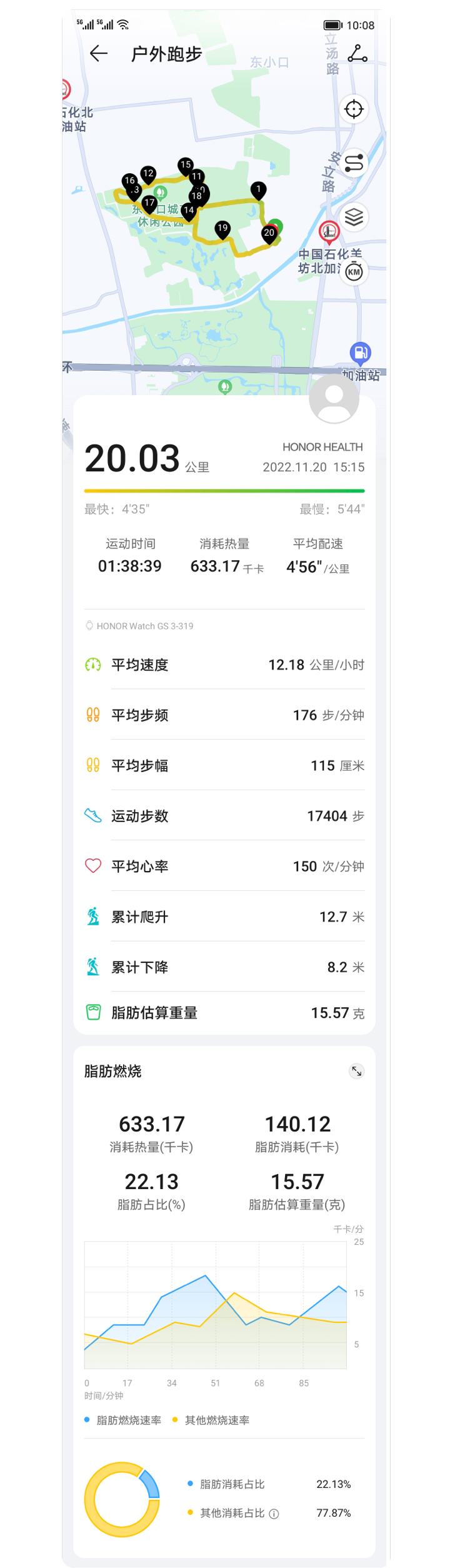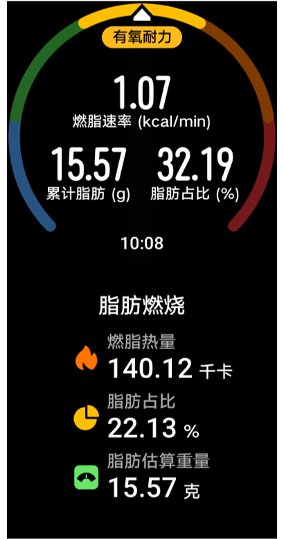 运动中,提示你保持在高效燃脂区间运动,燃脂更高效2。还可以查看燃脂比例等数据,精准了解运动状态。