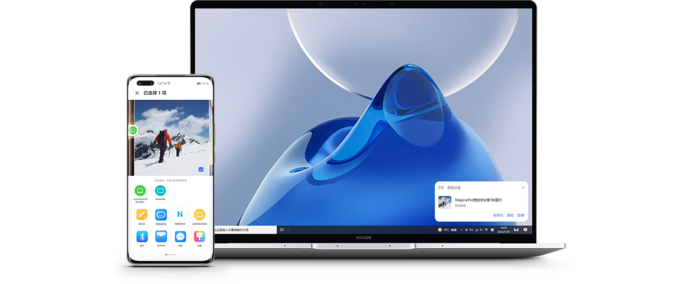 荣耀分享支持手机、平板和电脑之间的无缝互传,还支持Windows电脑之间的高速互传。