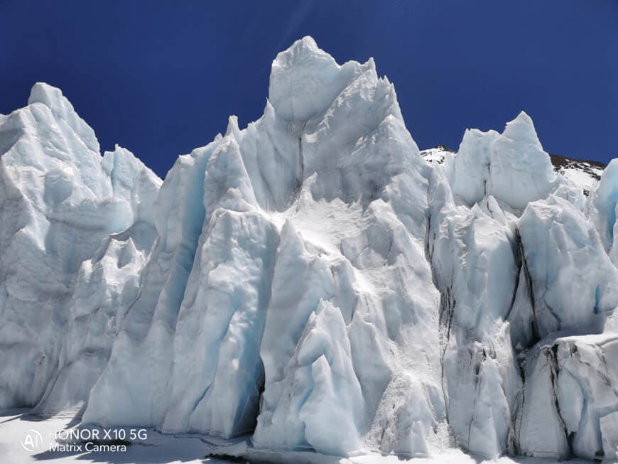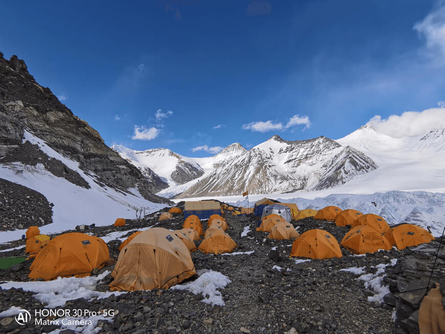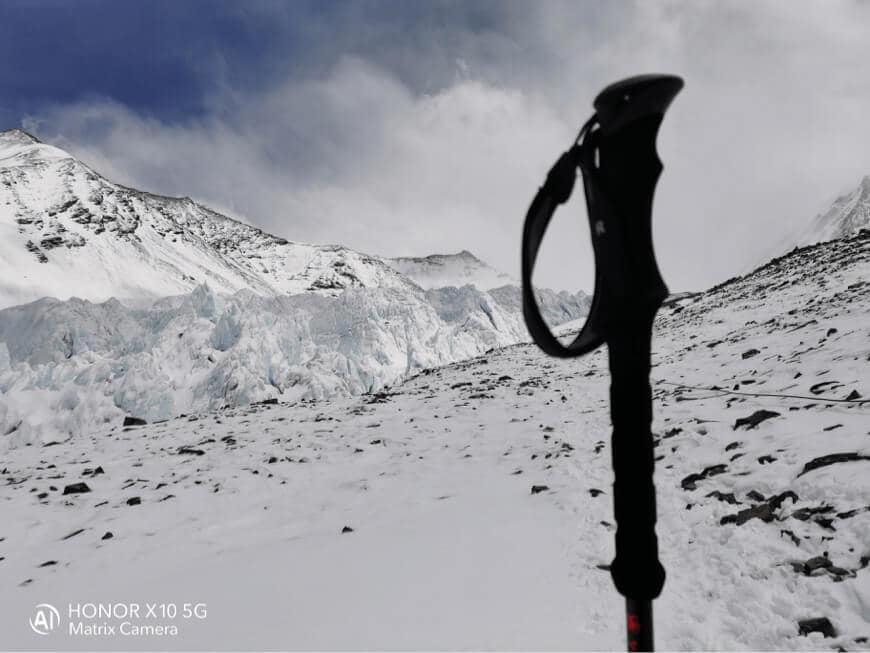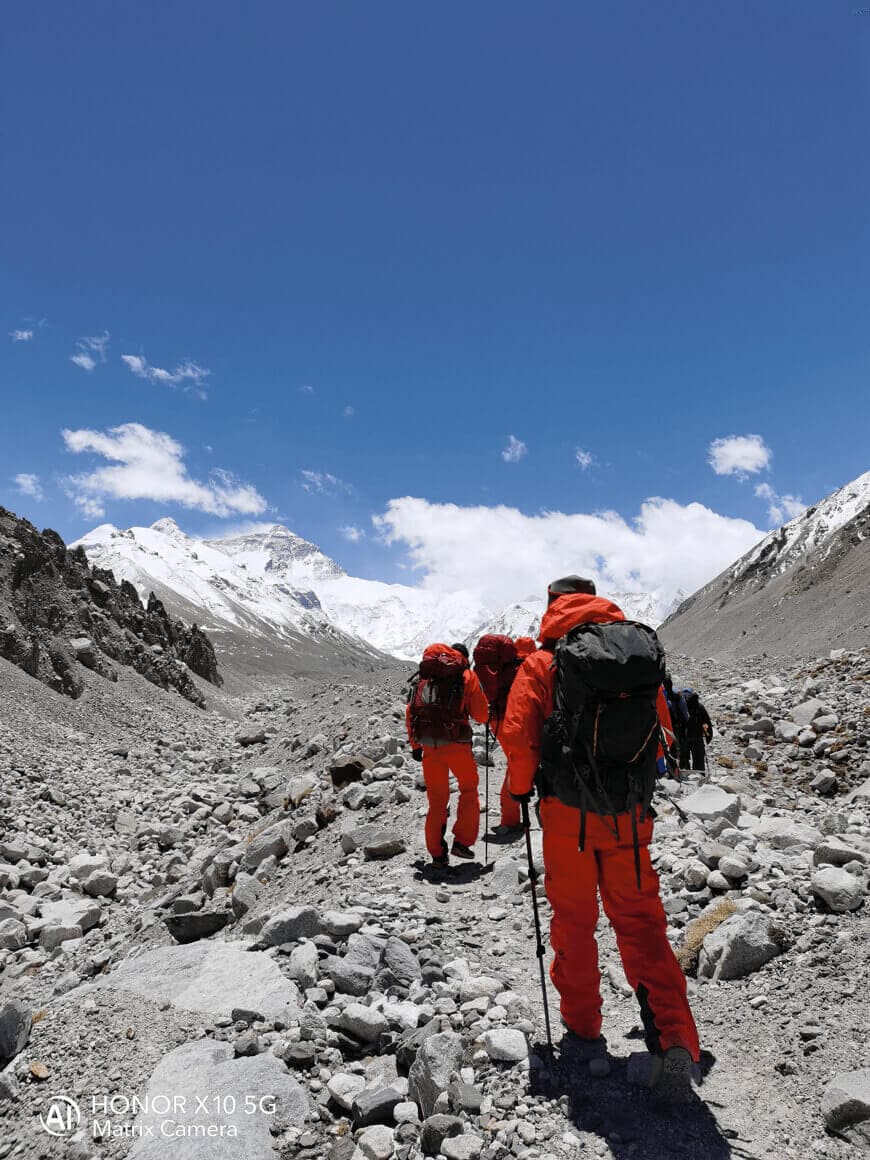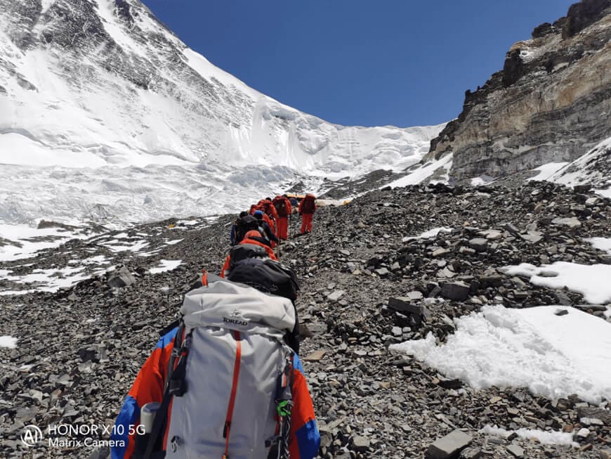 2020珠峰测量登山队全体成员成功抵达海拔6500米的前进营地。登山队员李璞和蔡卿用手中的荣耀手机记录下了攀登途中美景:壮丽的冰川,无言“伙伴”牦牛等,并利用5G实时回传。