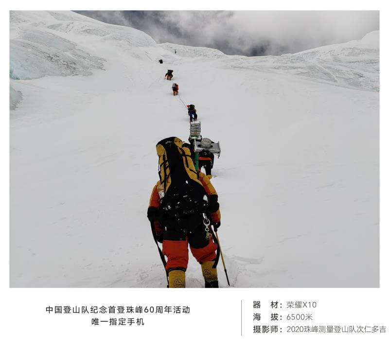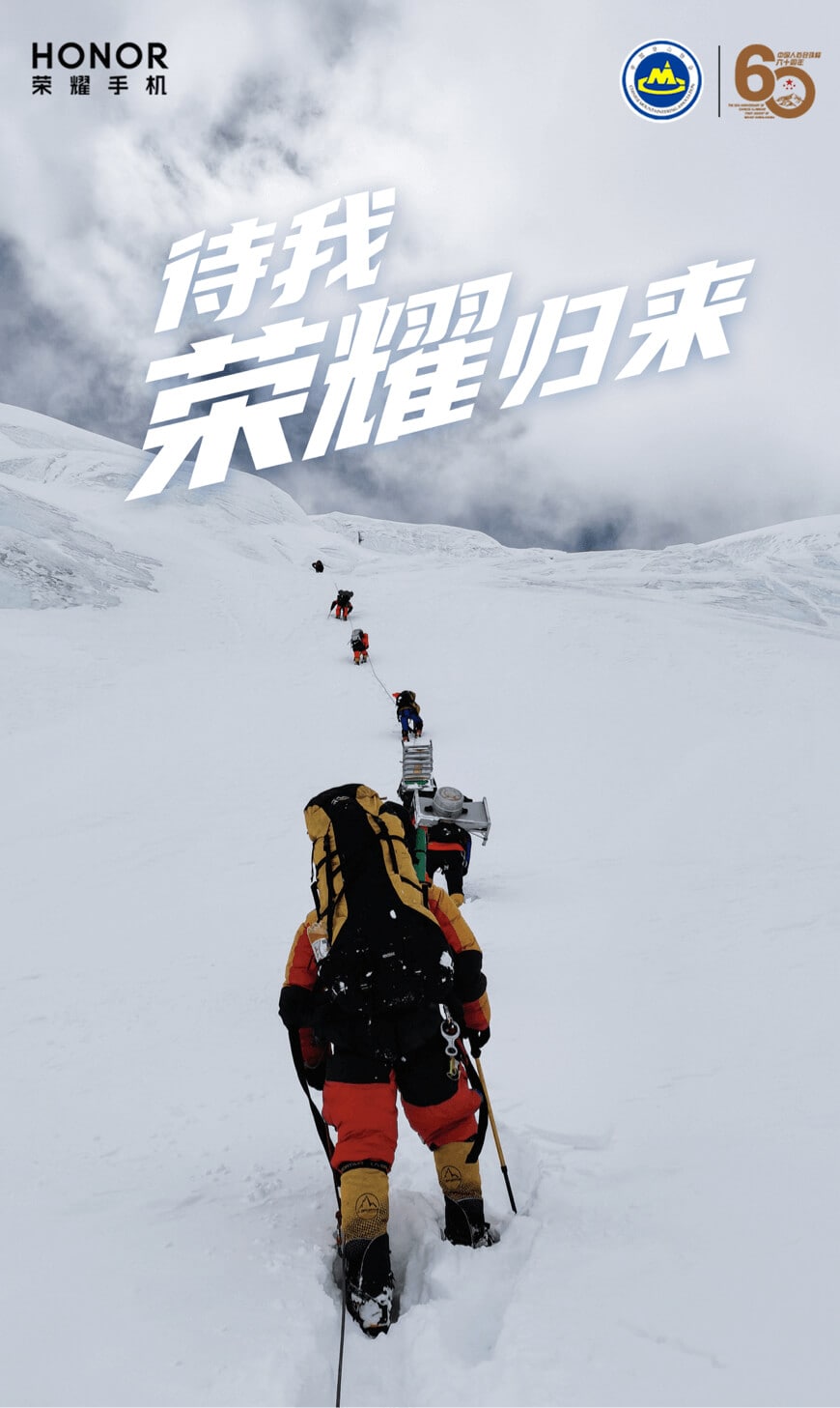 官宣!荣耀手机作为中国登山队纪念首登珠峰60周年活动唯一指定手机,将与登山队员们携手并肩,挑战极限,勇登珠峰。