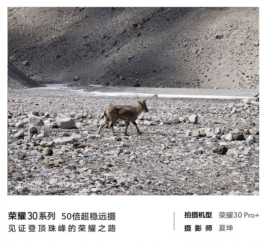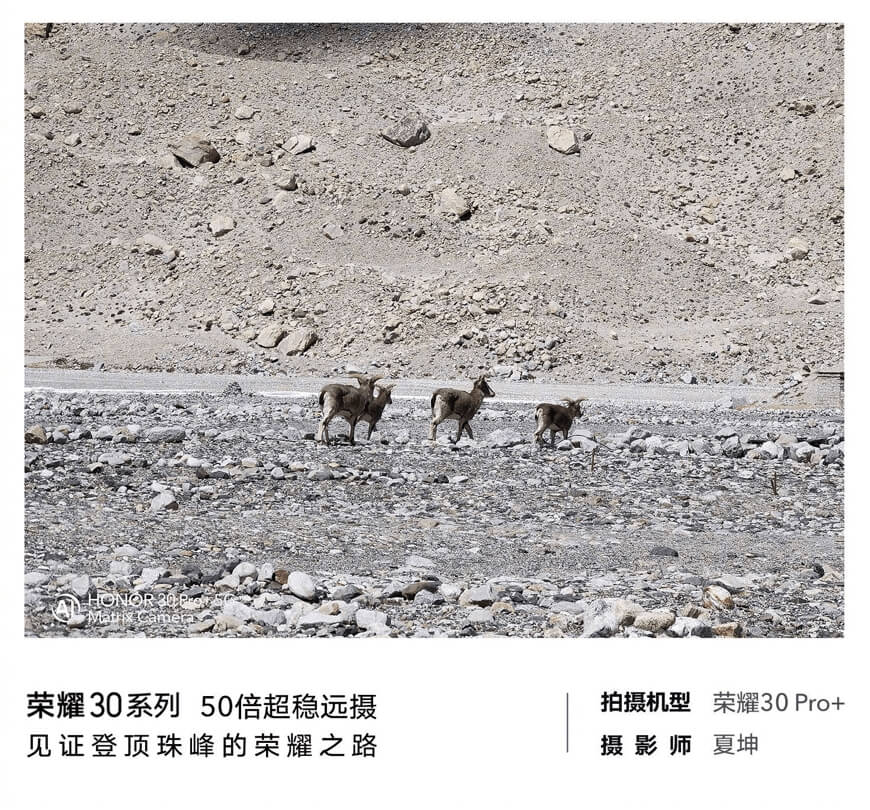 在珠峰测量登山队的攀登路上,偶遇排排向前的野生岩羊。登山队员用荣耀30系列记录下了这个珍贵瞬间。