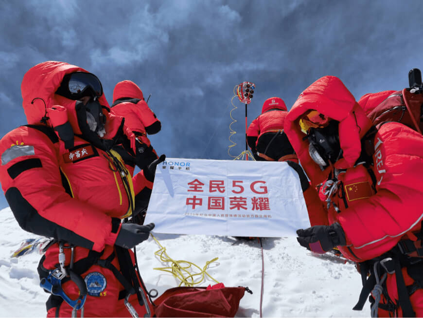 来自珠峰的5G速度!在珠峰海拔5800-6500米处,中国登山队员使用荣耀X10进行测速!