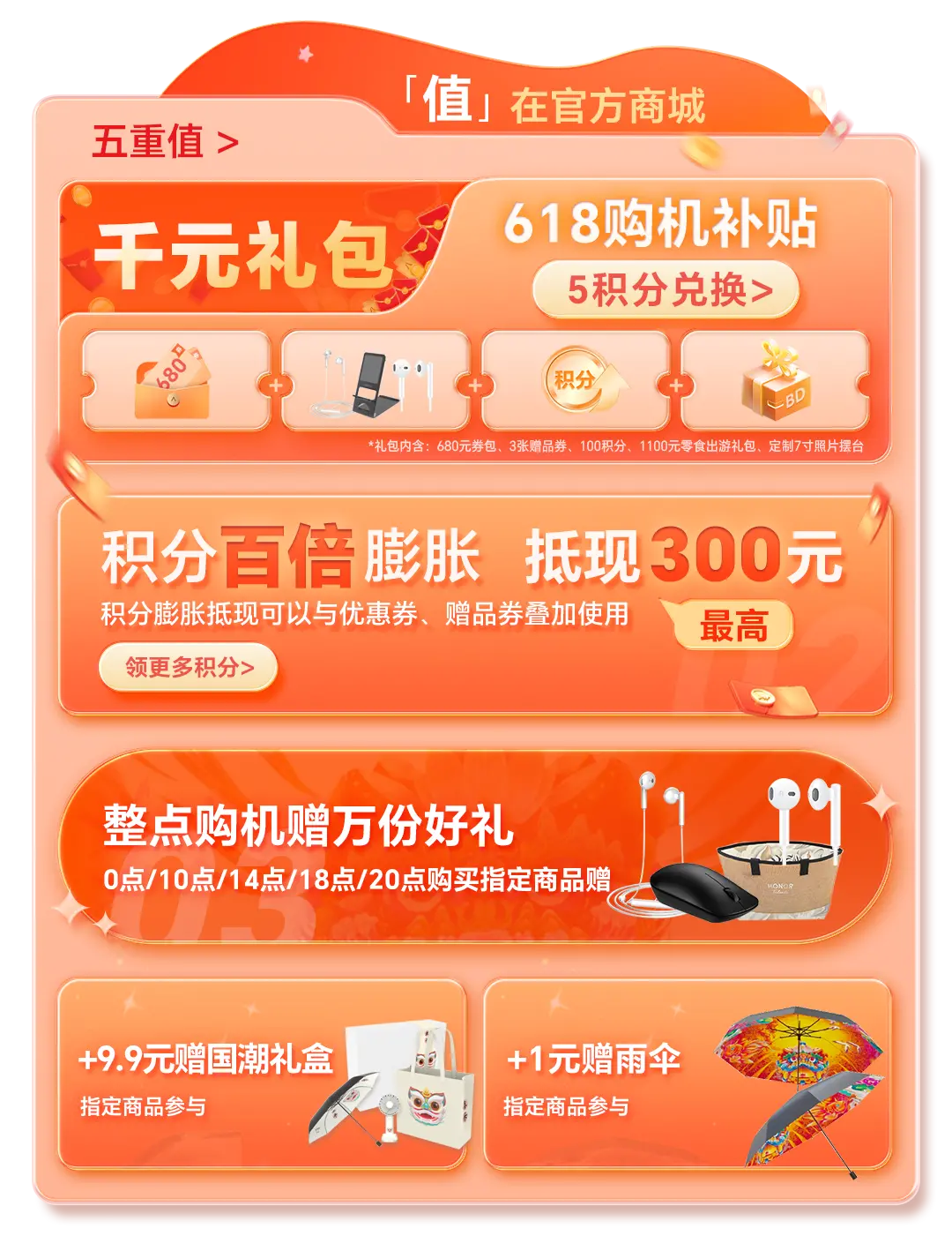 八等奖(100000名):荣耀手机30元优惠券