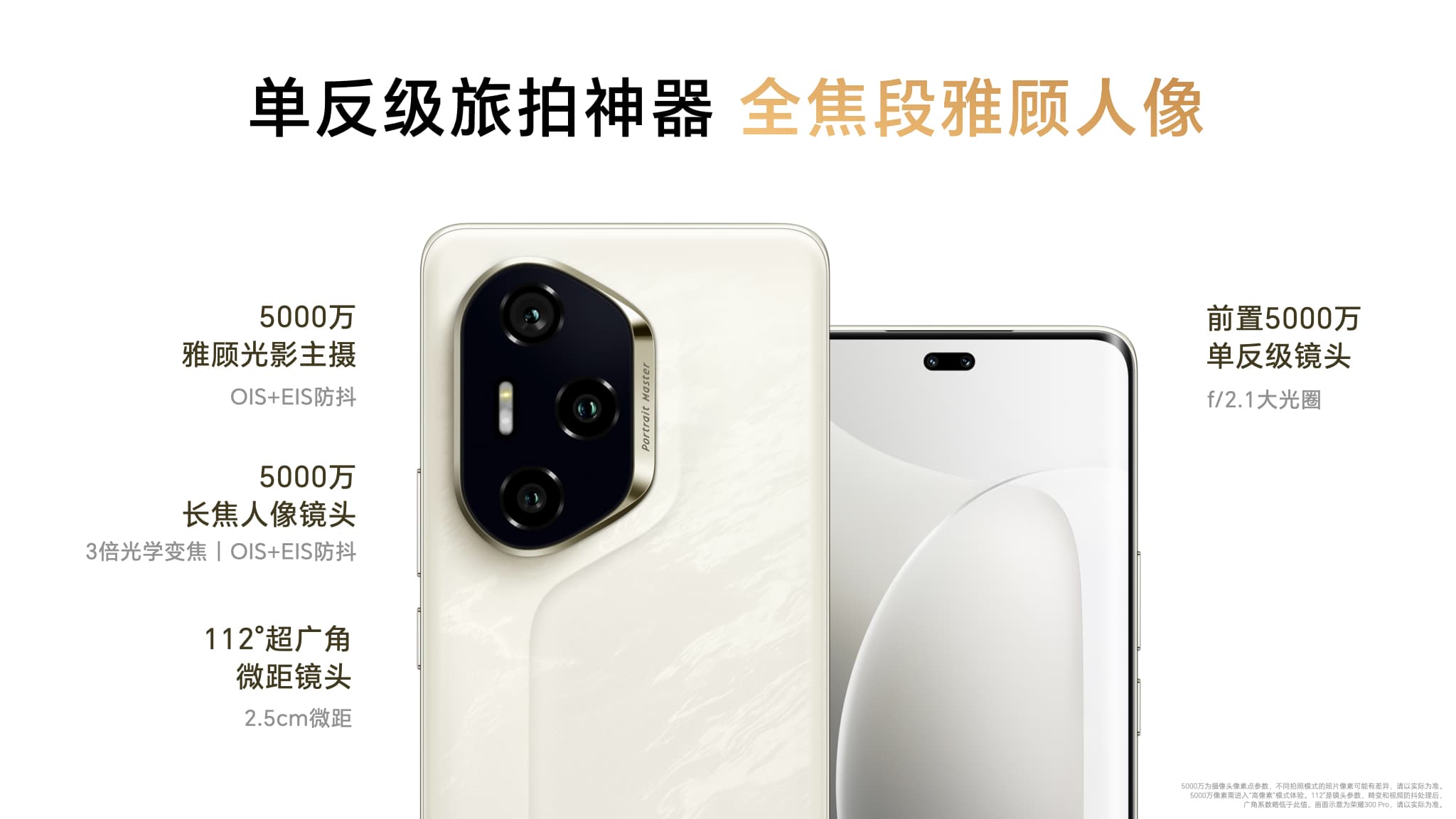 配置方面,荣耀300 Pro搭载了索尼IMX906超大底5000万像素雅顾光影主摄,配合5000万像素长焦人像镜头、1200万像素112°超广角微距镜头,以及前置5000万像素单反级镜头。荣耀300 Ultra更进一步,引入5000万像素潜望长焦人像镜头,为用户提供了全焦段影像解决方案,满足不同场景下的拍摄需求,尤其是旅行摄影时的全场景需求。特别值得一提的是,荣耀300 Pro和Ultra版本还配备了旗舰级的荣耀鹰眼精彩抓拍技术,能够智能识别并精准捕捉每一个精彩瞬间。