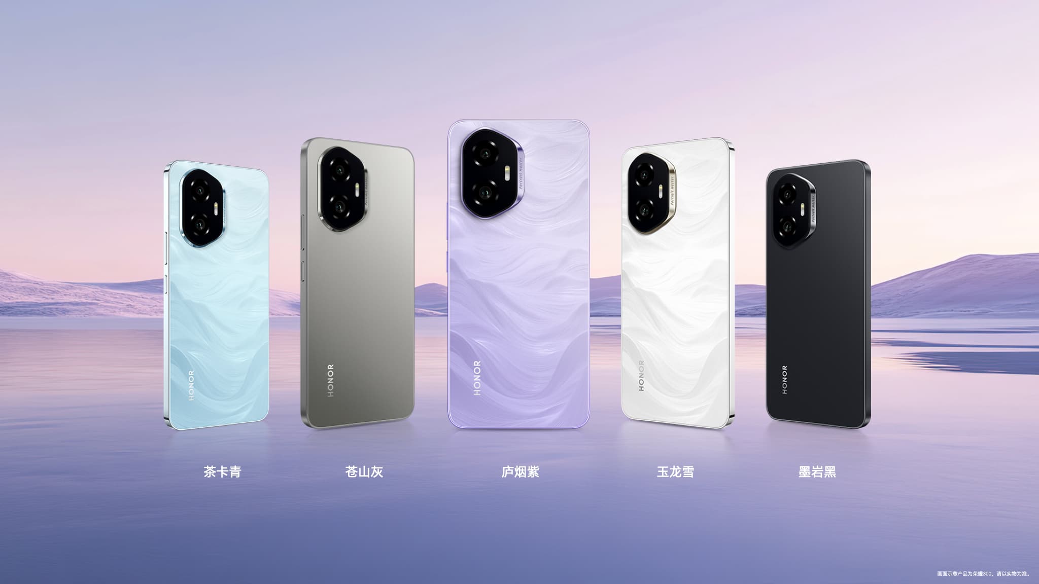 荣耀数字系列的设计美学一直引领行业风潮。此次,荣耀300系列以大自然为灵感,将中国自然风光的独特色彩与元素巧妙融合于产品设计中,推出庐烟紫、星光沙、茶卡青、玉龙雪、墨岩黑、苍山灰、山茶白七款唯美配色。每种颜色都展现了自然界的广阔多彩,构成了一场独特的美学盛宴。