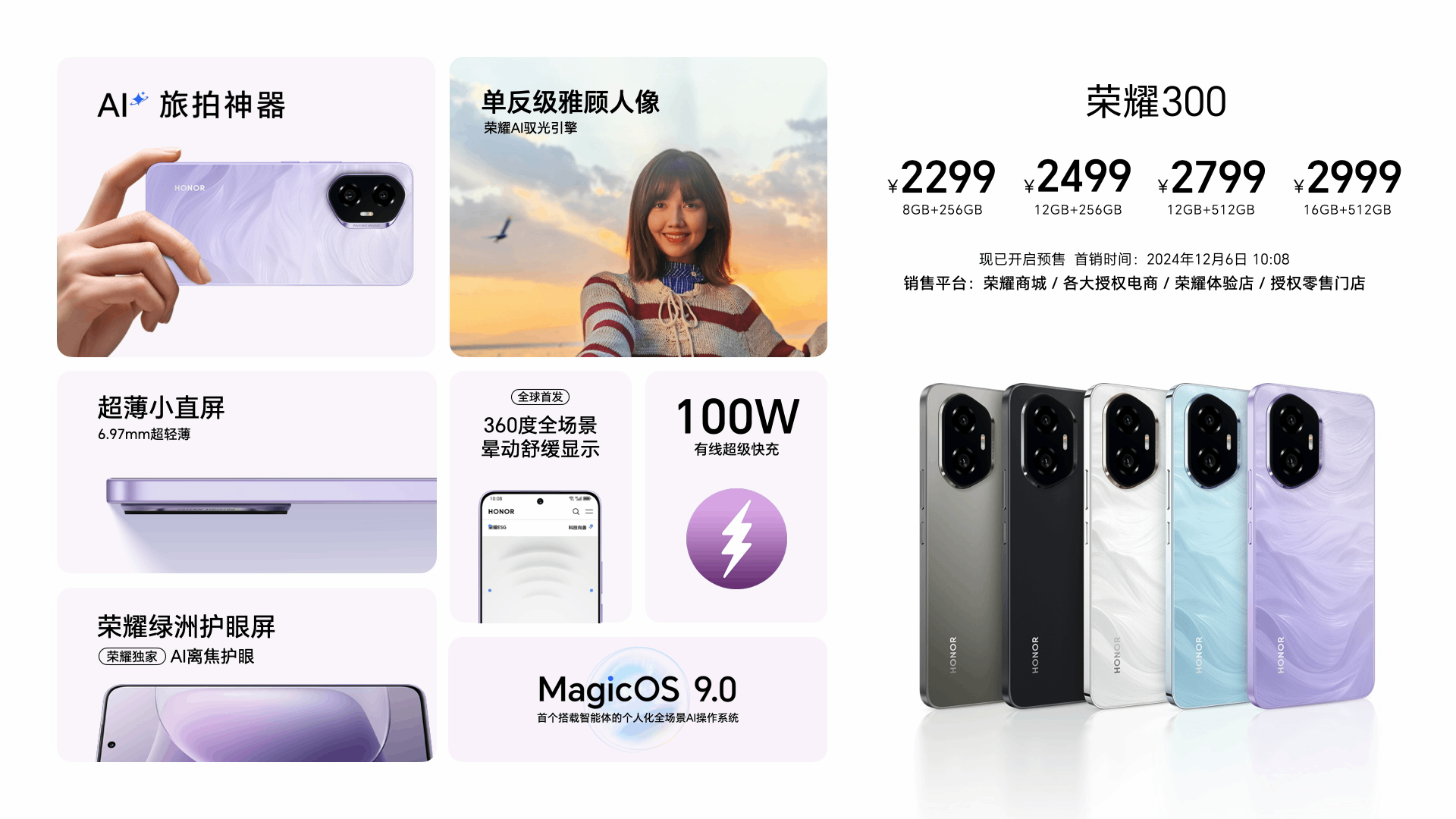 在影像功能、屏幕护眼科技、性能表现、操作系统以及外观设计五大核心领域,荣耀300系列均实现突破性升级,成为科技性能与美学设计领先档位的又一巅峰力作。
