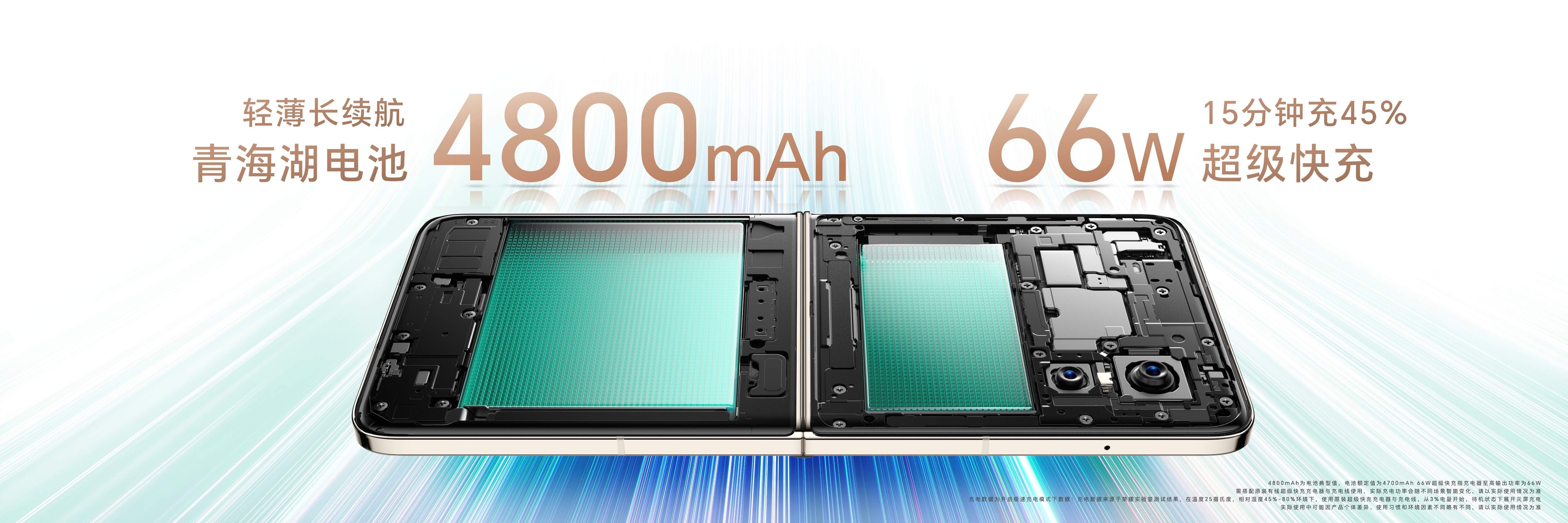 荣耀Magic V Flip拥有出色的旗舰性能,首次搭载旗舰青海湖电池,容量达到4800mAh,采用领先的硅碳负极电池技术,实现了高能量密度与轻薄机身的完美结合。同时,荣耀Magic V Flip支持66W超级快充,能够在短时间内迅速补充电量,彻底告别电量焦虑。