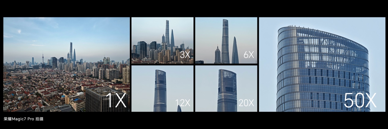 在此基础上,荣耀大王影像升级还带来全新AI超级长焦功能,优化了30x-100x超长望远焦段的拍照清晰度。整个拍照过程会基于部署在云端的124亿参数大模型,通过训练AI学习建筑、自然风光、植物等场景类别的主体拍摄物理特征,让镜头及传感器采集的光学信息进行归纳总结,此时结合不同光照,手机就会输出接近真实效果的纹理、颜色等细节,为了进一步提升用户的长焦使用体验,在联网情况下,用户还可以使用AI超级长焦即拍即得,无需二次进入图库进行云端增强。得益于大模型基座带来的强大算力支撑,荣耀Magic7系列搭载的云端长焦增强大模型,平均每张图片的细节生成计算量达到1.27万亿次,让输出的照片更加细腻锐利,手机望远镜头之所及,细节皆清晰可辨。