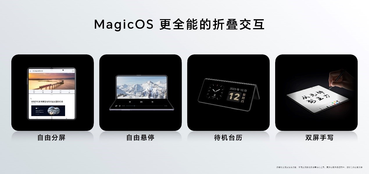 在双轮驱动的极致产品主义理念践行中,荣耀通过对每一代Magic系列的持续打磨,不断解决消费者的痛点,同时也为消费者带来领先的科技体验。荣耀Magic V2引领折叠屏进入毫米级时代,荣耀V Purse实现折叠屏科技与时尚的突破,荣耀Magic Vs2的全新发布,为消费者带来又一部轻薄大屏旗舰,进一步引领折叠屏进入主力机时代。