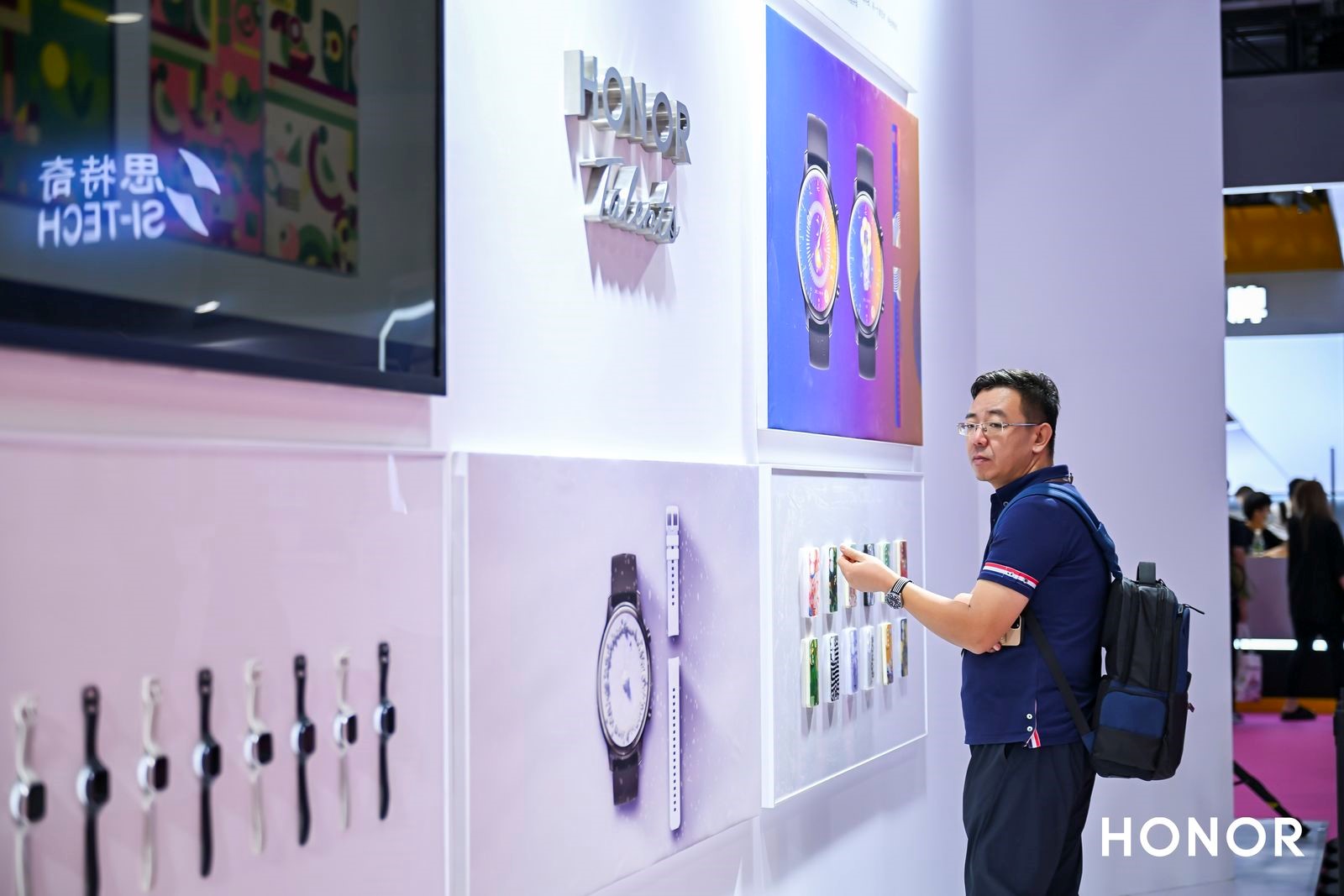行业解决方案区则重点分享了荣耀基于多场景的业务需求,面向政企客户所提供的专业定制、安全隔离、加密通信、智能管控等多个专属服务和一体化解决方案;此外,荣耀还特别开设了HONOR Talents展区,展出多幅HONOR Talents荣耀全球设计大赛优秀获奖作品,到场观众可现场感受科技与艺术结合的创新之美。