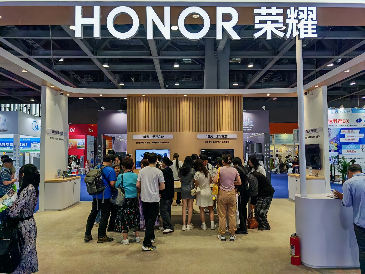 在本届老博会现场,荣耀展出了包括荣耀Magic V3、荣耀Magic V Flip、荣耀Magic7在内的全系列手机产品,和智能穿戴设备、PC、平板及智慧屏等多款终端产品。展台划分为“换脸检测 远程守护”、“看见 繁华世界”、“听见 无声之处”、“绿洲护眼 健康显示”四大功能体验区,向消费者近距离展示荣耀坚持科技向善的决心和荣耀产品的科技魅力。展会整体人流量超5万名线下观众,广东省残联、市残联、市政领导团组、商会团组等纷纷来到荣耀展台体验功能,其中图像描述、端侧AI字幕、AI换脸检测、离线通话字幕、随选朗读等功能广受参展领导和消费者好评。