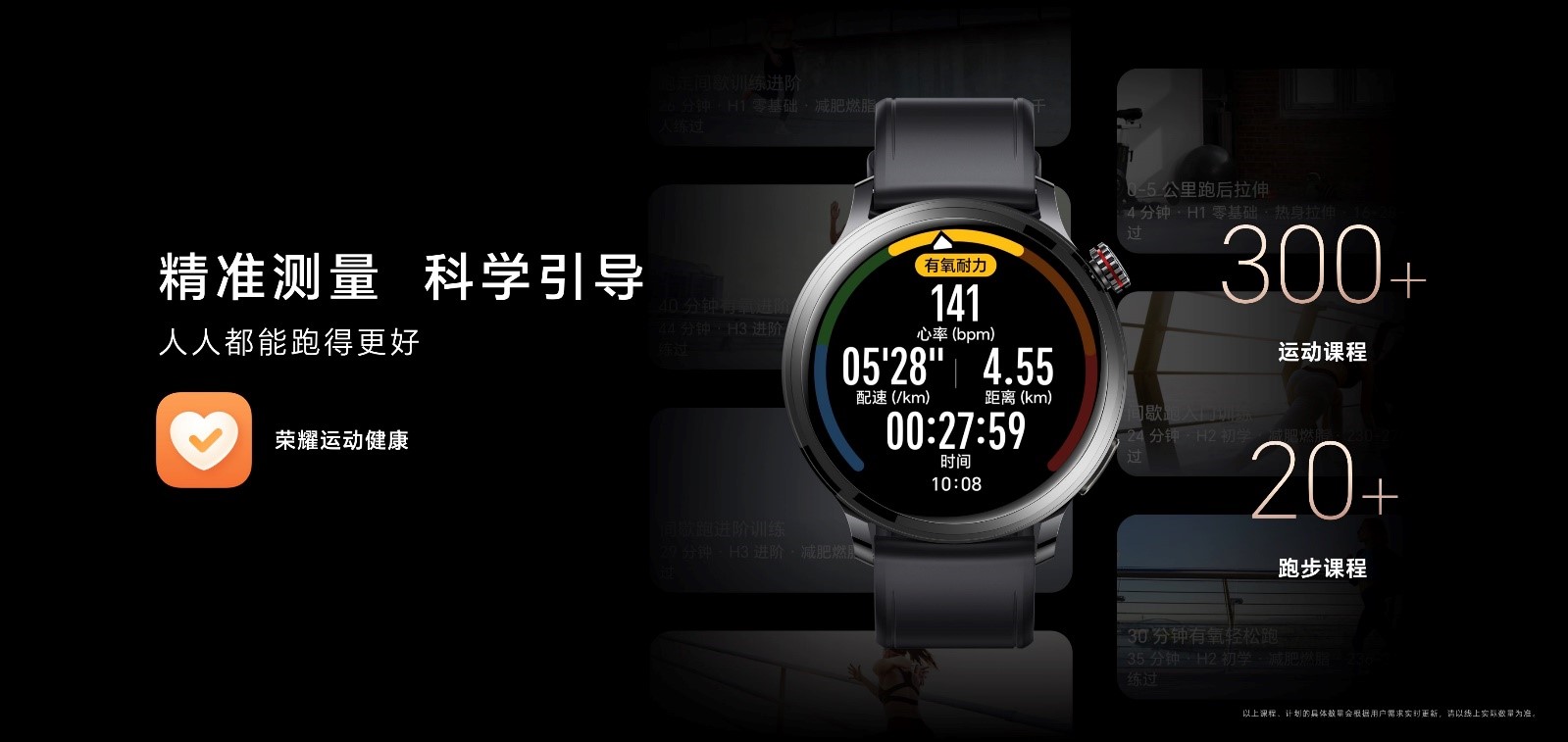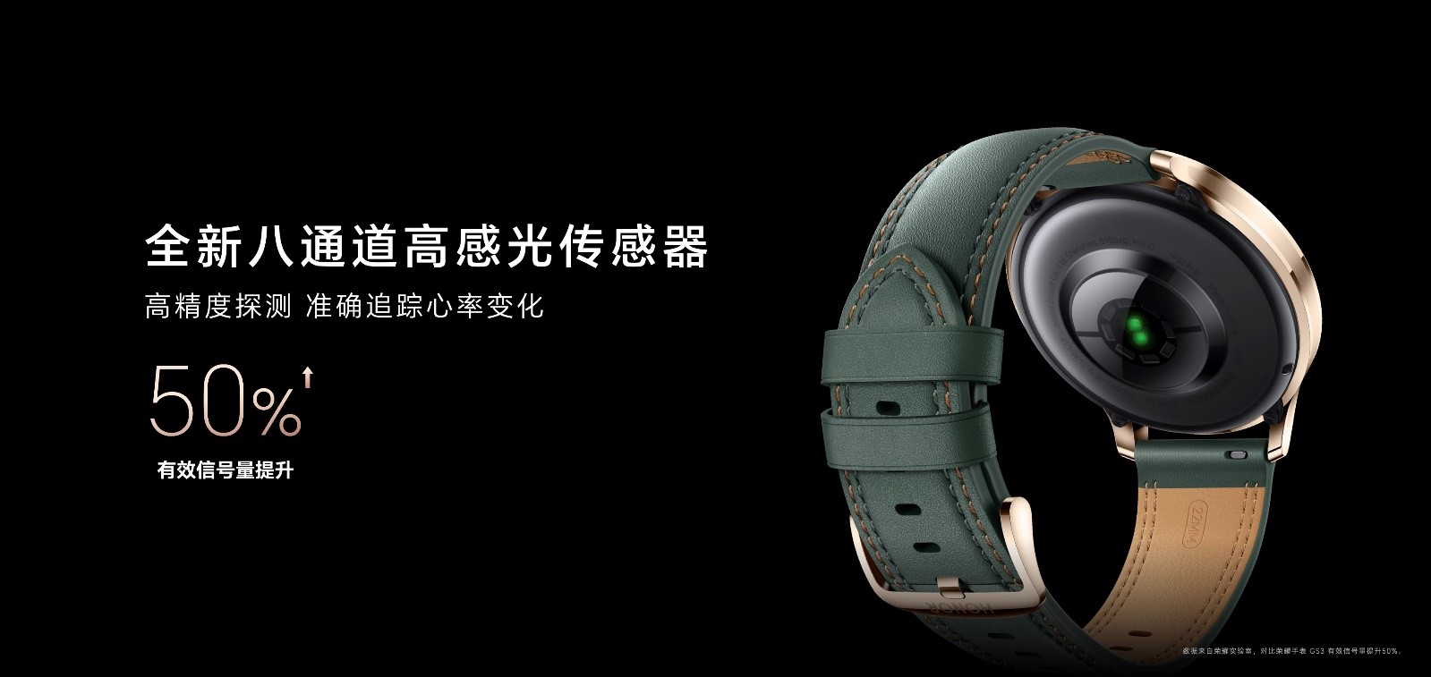 荣耀还致力于打造更懂你、更专业、更全面的运动健康体系。荣耀手表4 Pro全新8通道高感光PPG传感器、高透模组让进光量提升50%,实现走路、跑步等场景下综合心率准确性大幅提升。荣耀手表4 Pro搭载全新升级的引擎及心率大模型,大幅度提升无规律、高强度间歇等运动场景的监测能力,针对手表晃动信号流失场景,推出独家运动数据校准技术,大幅度提升模型预测及抗噪检测能力,实现双向校准。