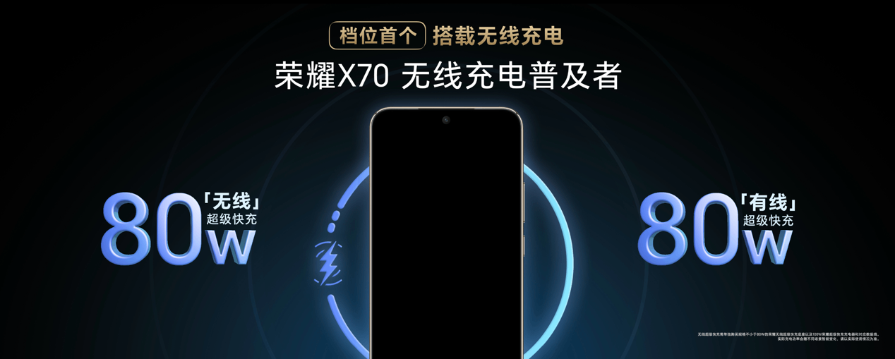 此次,荣耀X70搭载第三代青海湖电池,容量高达8300mAh,再次刷新国产手机电池容量纪录。电池融合高密度材料与先进封装工艺,在实现超大电池容量的同时,机身厚度仍7.76mm,打破 “大电池必厚重” 的行业固有认知,兼顾强劲续航与便携体验。同步支持80W有线+80W无线双快充,并具备反向充电功能,构建出全面的续航解决方案。