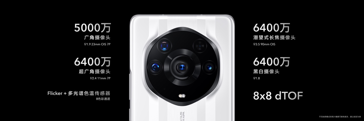 影像方面,荣耀Magic3 至臻版打破手机镜头天花板,突破性地采用了多主摄设计。在与荣耀Magic3 Pro采用同样的业界领先6400万潜望式长焦镜头和6400万黑白镜头基础上,荣耀Magic3 至臻版将5000万像素超大底主摄升级为索尼IMX700,传感器尺寸达到1/1.28英寸,拥有业界领先的感光度(ISO),成像解析力、暗光拍摄能力更强。而超广角微距镜头,也从1300万像素,升级为业界领先的6400万像素126°超大广角微距镜头,能完美呈现广阔空间中整个建筑、地标,亦能捕捉2.5cm近距离下的微小细节,提供肉眼无法看到的创意视角。多主摄计算摄影,实现多焦段高清影像。