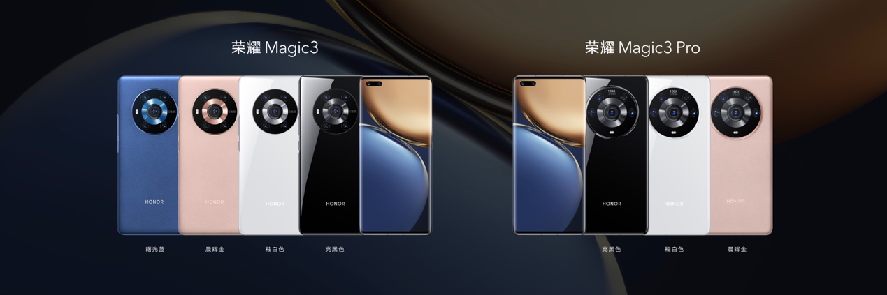 “曙光蓝”代表成熟、冷静和睿智,蕴藏着韬光养晦后再次出发的实力和勇气;“晨晖金”红橙色调重现黄金时刻的温柔光线,欲为世界注入温暖和力量。除此之外,荣耀Magic3系列玻璃后壳版则采用了亮黑、釉白两款色。荣耀Magic3系列的美学面面俱到,万千手机中,独具一格的非凡设计,一眼可辨。