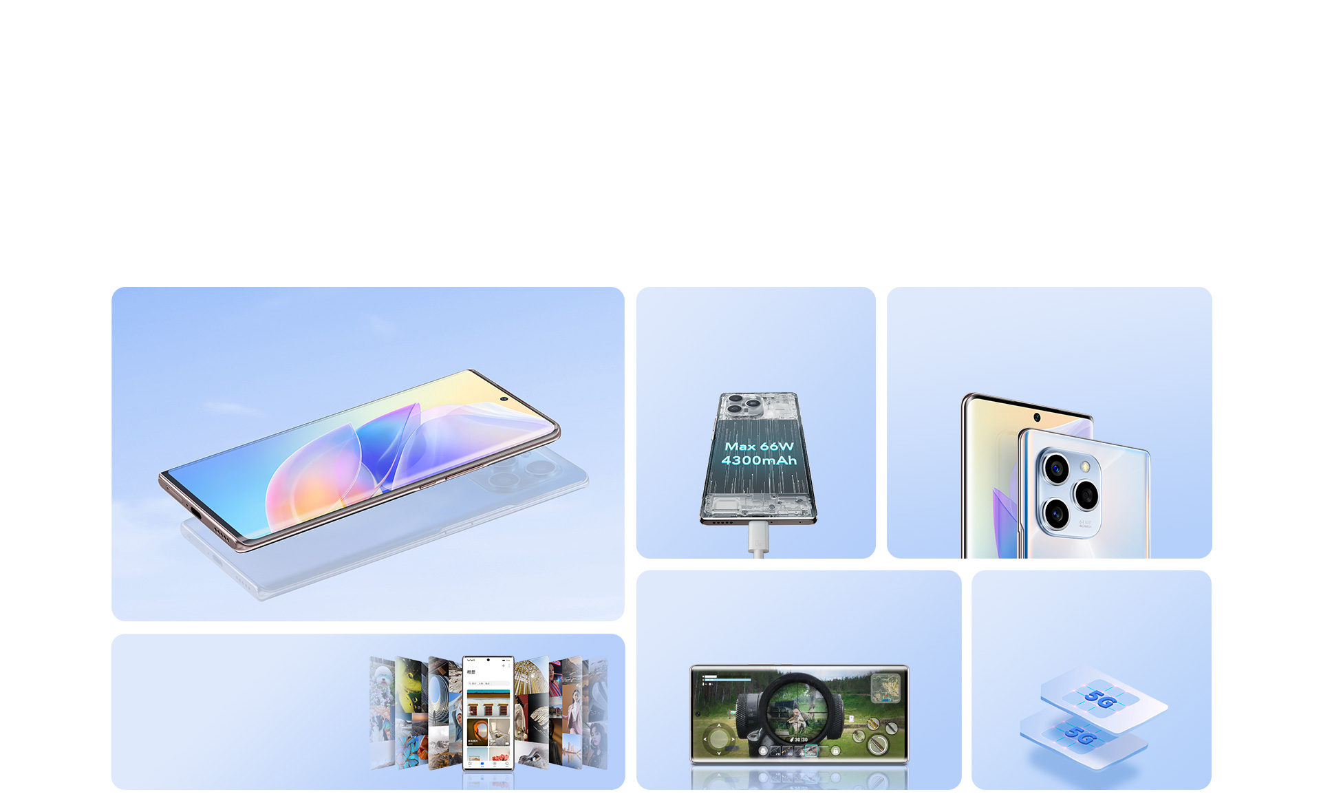 6.最大支持有线充电功率66W,需搭配标配的荣耀超级快充66W原装充电器及充电线使用;实际充电功率可能因产品个体差异、使用习惯和环境因素不同而智能变化,请以实际使用情况为准。