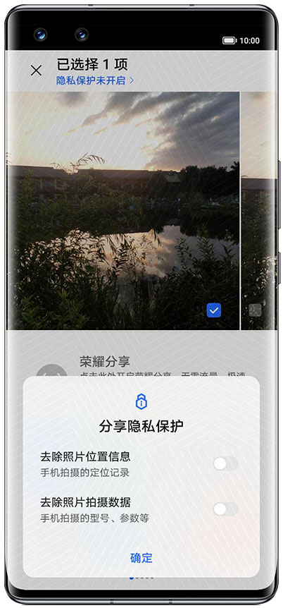 2.在分享图片时开启隐私保护功能,你可以选择“去除照片位置信息”和“去除照片拍摄数据”,帮你保护隐私信息。