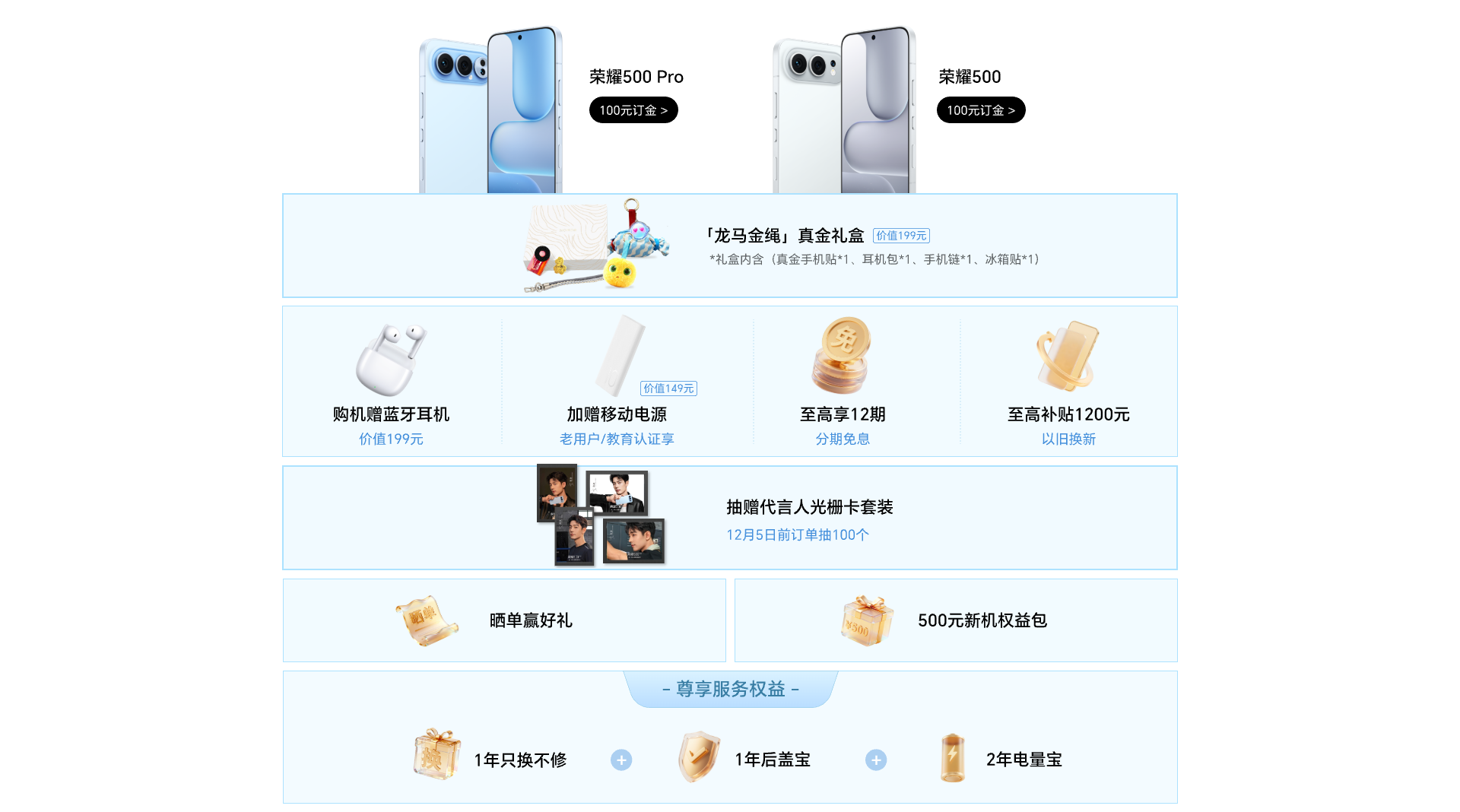 4、奖品发放:用户参与抽奖完毕后即在本抽奖活动页面被告知抽奖结果。实物中奖用户将会收到消息通知,PC端的查看路径:在我的账号>消息中心>活动消息;手机端的查看路径为:点击荣耀商城APP端首页搜索栏右侧的小图标,进入消息中心,查看活动消息,或者进入商城>我的>右上角消息中心。优惠券将在购买15分钟内发至用户账户,请在荣耀商城-我的-优惠券中查看,优惠券具体的使用规则和限制详见券面说明,可使用优惠券的商品见券面“去使用”商品列表。抽中实物奖品用户请于2025年11月30日前到“个人中心-收货地址管理”中设置默认收货地址,实物奖品将在活动结束后30个工作日内按照您的默认收货地址发货,具体版本/制式/颜色请以收到的实物为准。