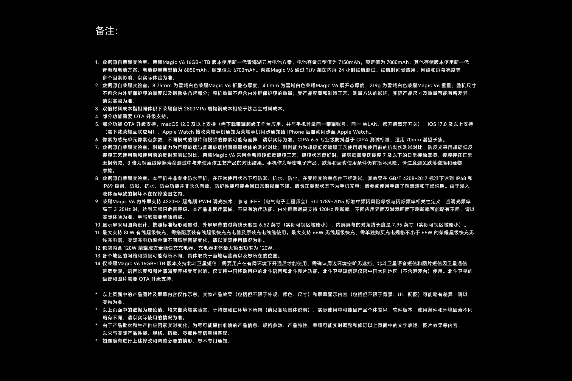*以上页面中的数据为理论值,均来自荣耀内部实验室,于特定测试环境下所得(请见各项具体说明),实际使用中可能因产品个体差异、软件版本、使用条件和环境因素不同略有不同,请以实际使用的情况为准。