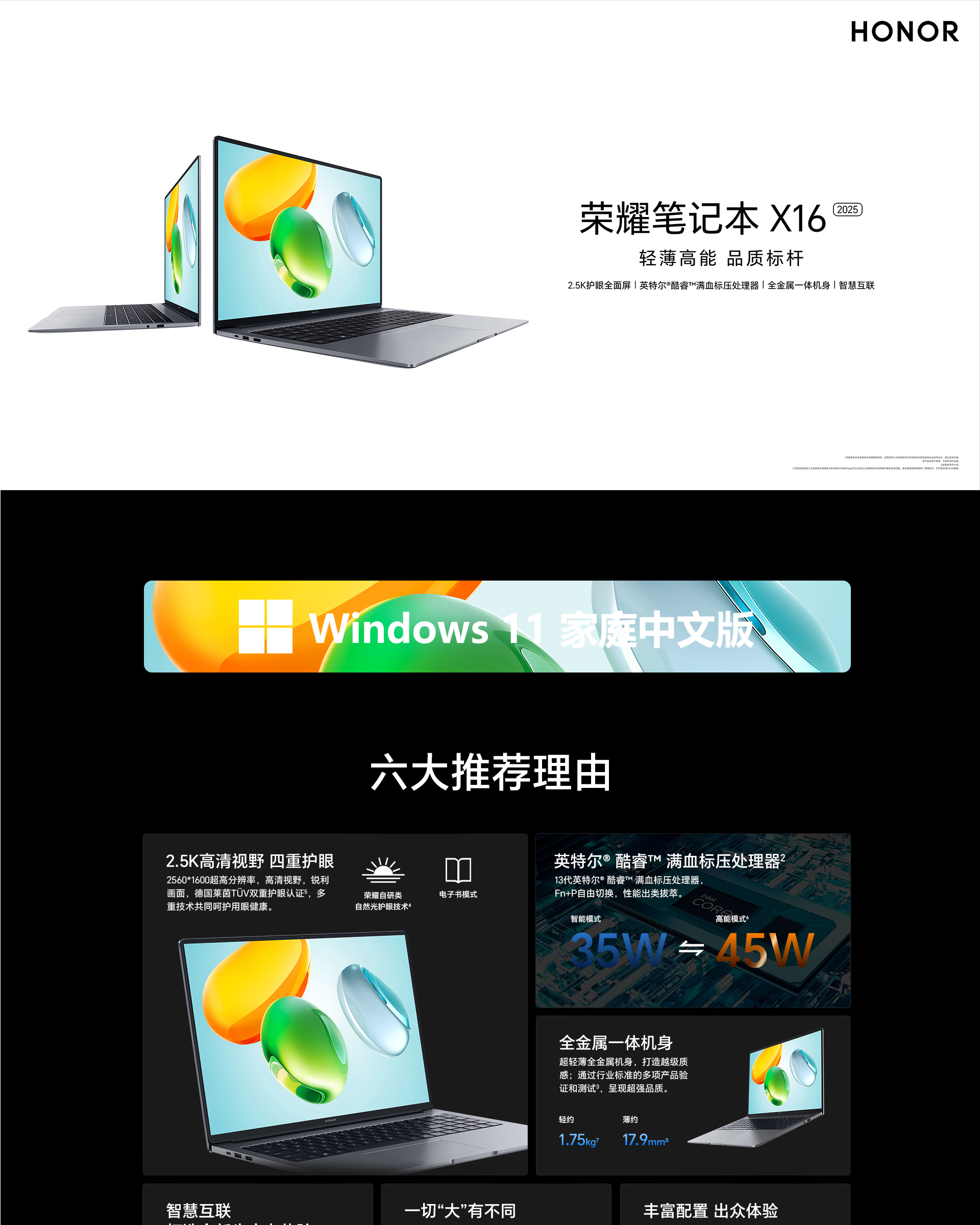 【国补专享】荣耀笔记本 X16 超清版 13代酷睿标压i5 Windows11家庭中文版 16G 512G 120Hz 16英寸 星空灰
