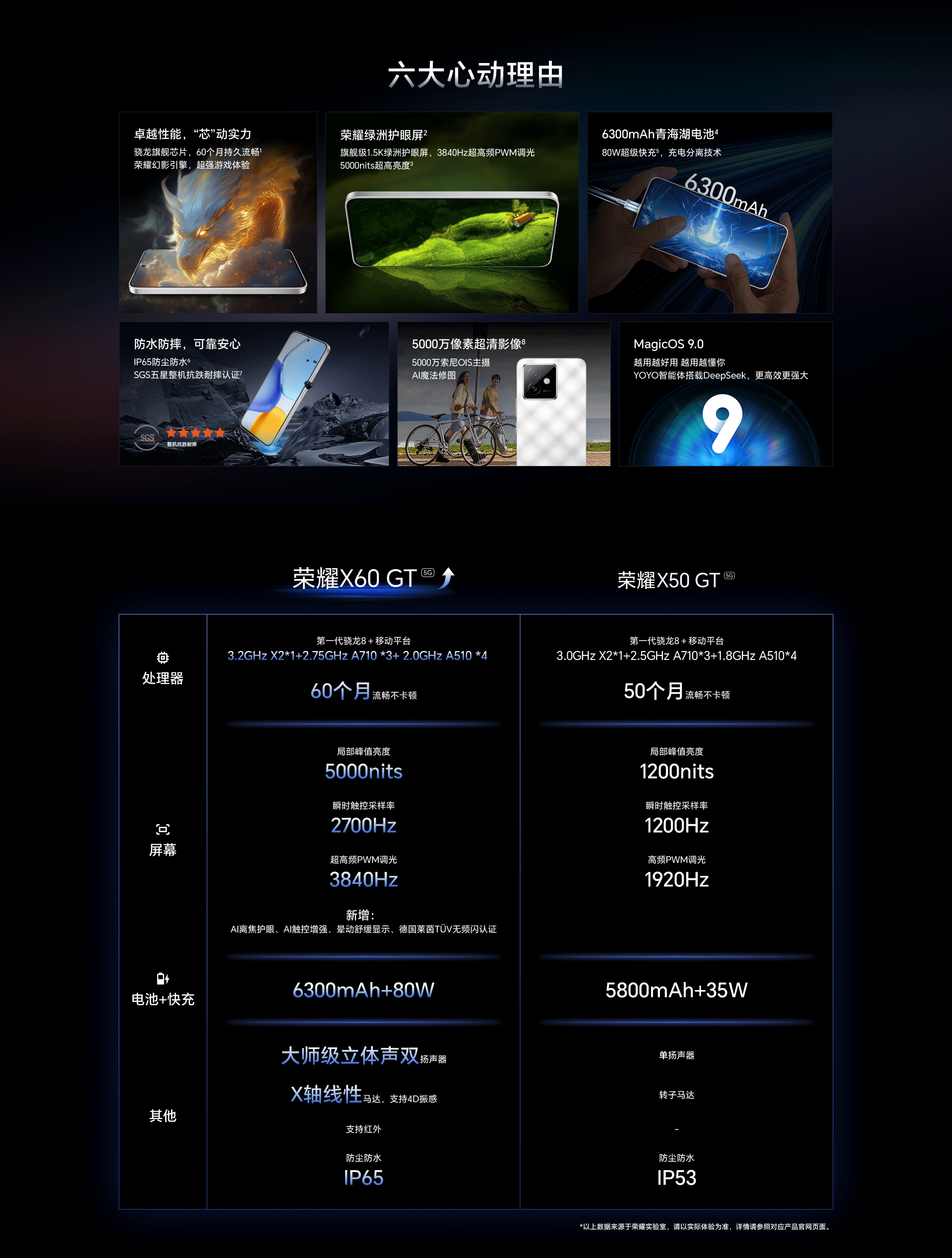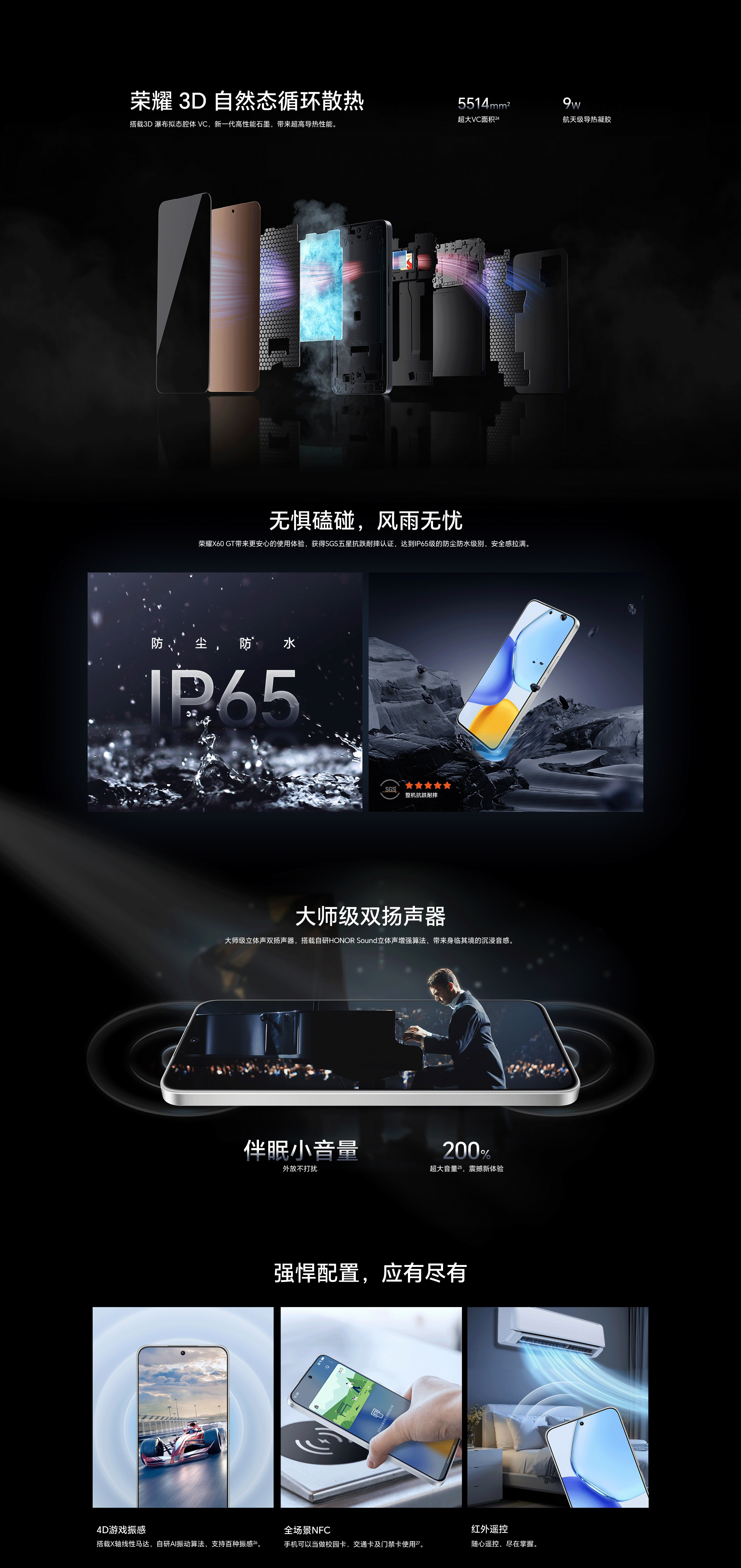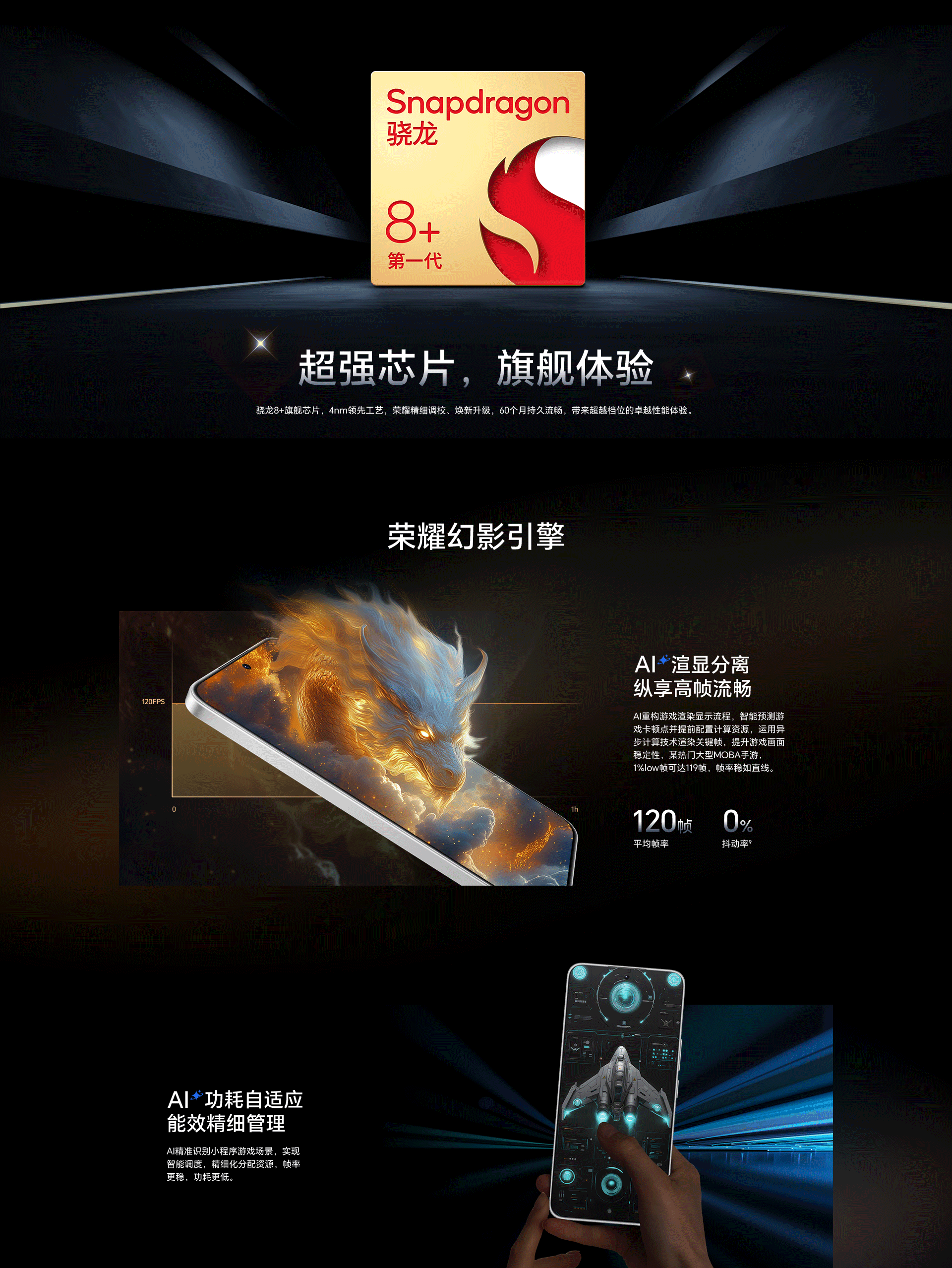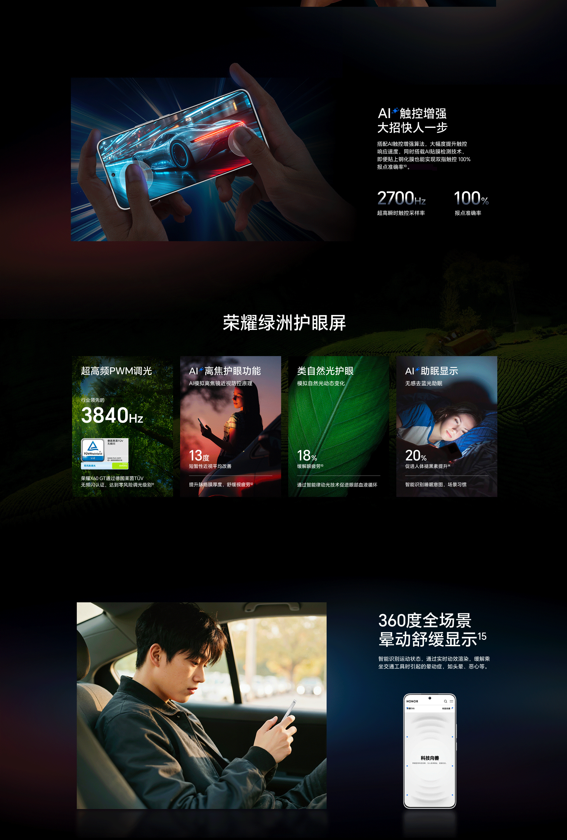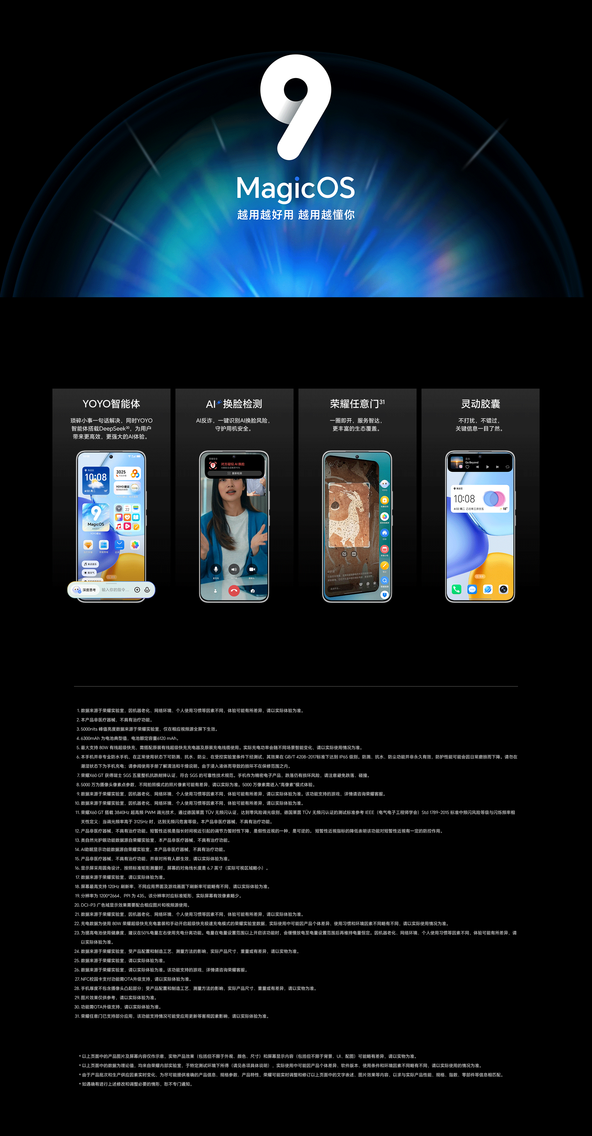 *以上页面中的数据为理论值,均来自荣耀内部实验室,于特定测试环境下所得(请见各项具体说明),实际使用中可能因产品个体差异、软件版本、使用条件和环境因素不同略有不同,请以实际使用的情况为准。