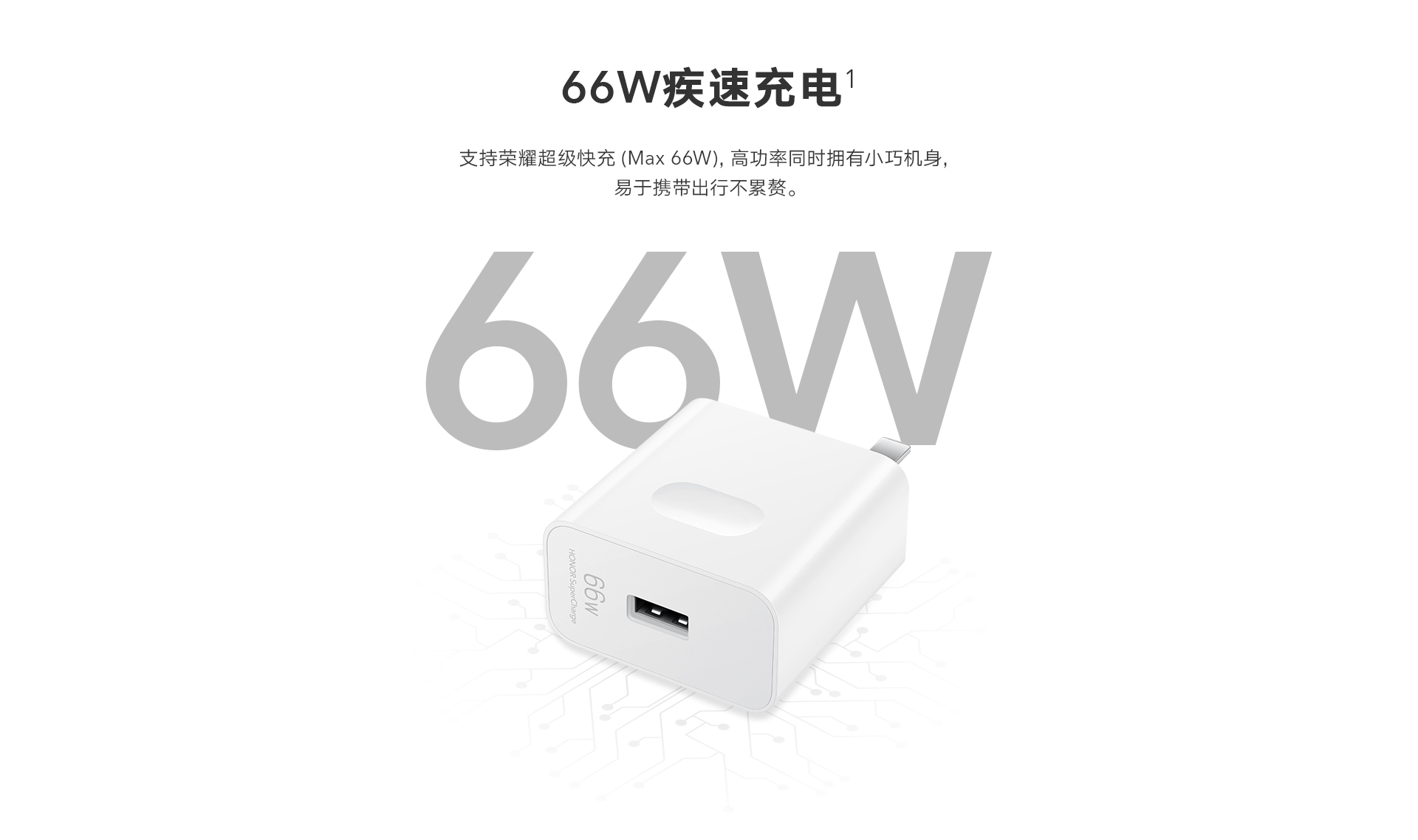 荣耀超级快充充电器(Max 66W) X 1数据线X 1说明书(含保修卡)X 1