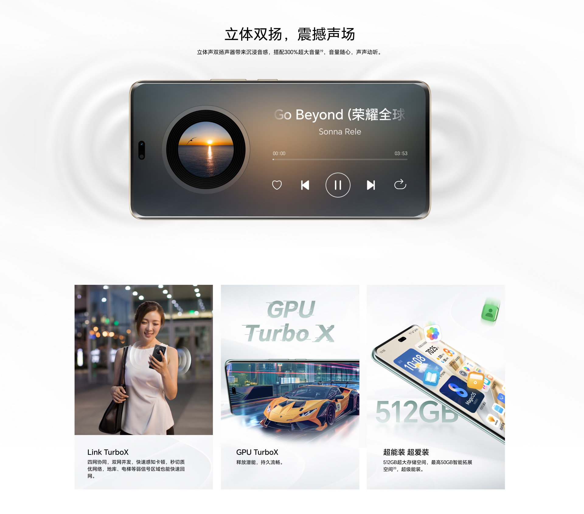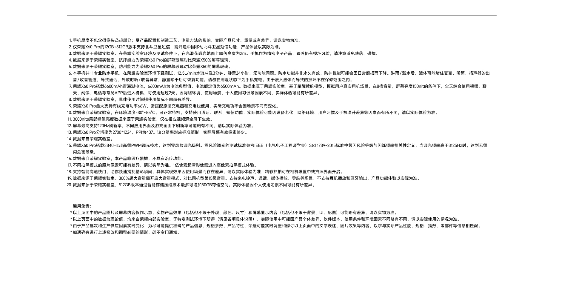 *以上页面中的数据为理论值,均来自荣耀内部实验室,于特定测试环境下所得(请见各项具体说明),实际使用中可能因产品个体差异、软件版本、使用条件和环境因素不同略有不同,请以实际使用的情况为准。
