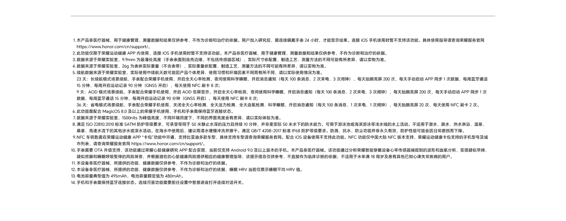 *以上页面中的数据为理论值,均来自荣耀内部实验室,于特定测试环境下所得(请见各项具体说明),实际使用中可能因产品个体差异、软件版本、使用条件和环境因素不同略有不同,请以实际使用的情况为准。