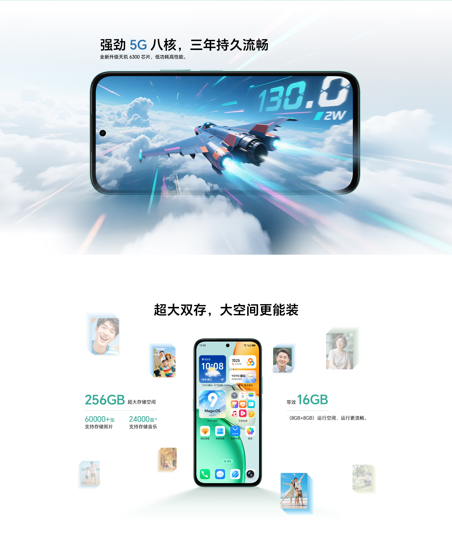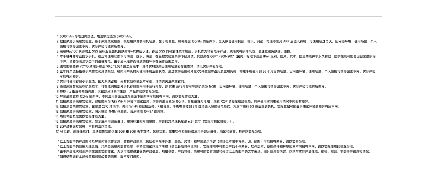 *以上页面中的数据为理论值,均来自荣耀内部实验室,于特定测试环境下所得(请见各项具体说明),实际使用中可能因产品个体差异、软件版本、使用条件和环境因素不同略有不同,请以实际使用的情况为准。