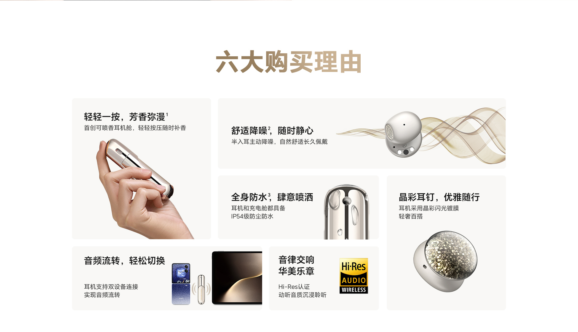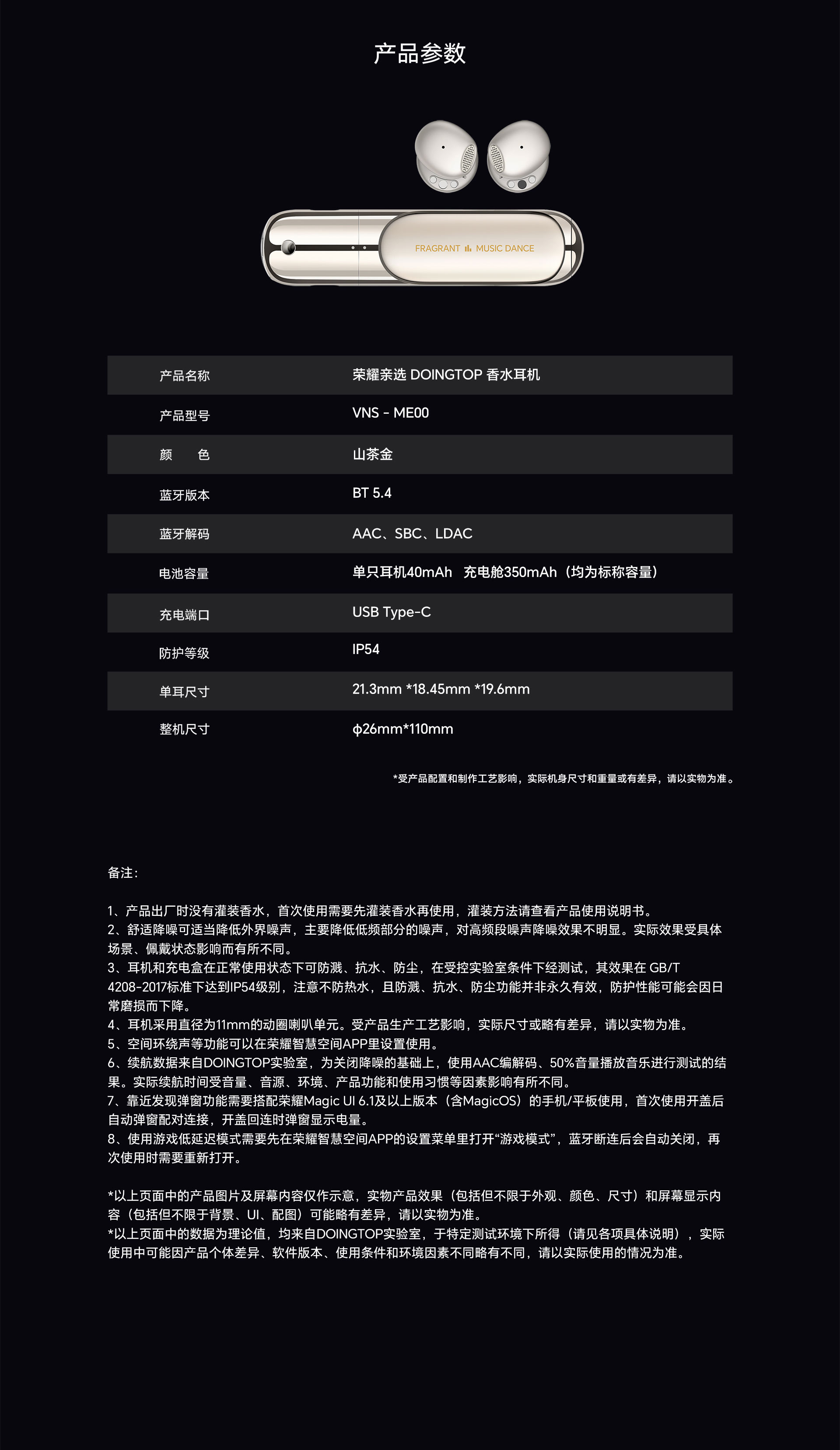 彩盒:1耳机:1对充电盒:1个说明书:1本收纳盒:1个香水仓:1本
