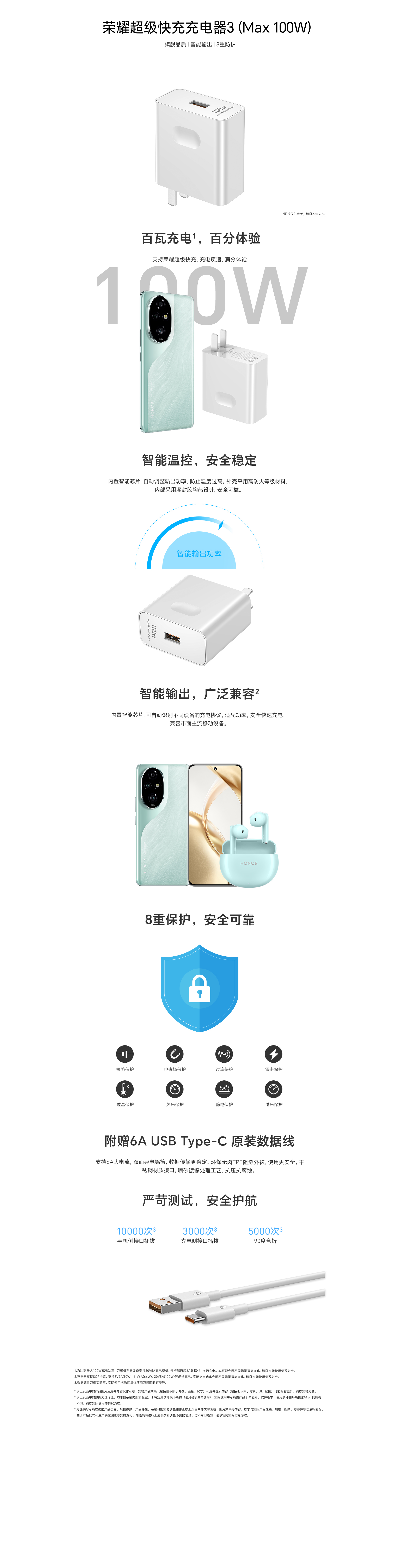 荣耀超级快充充电器3(Max 100W) X 1数据线X 1说明书(含保修卡)X 1