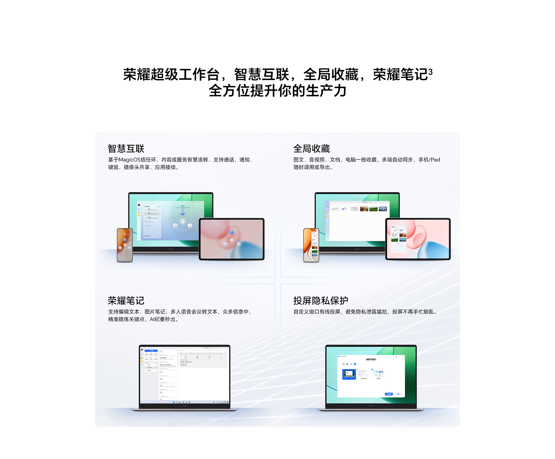 *为提供尽可能准确的产品信息、规格参数、产品特性,荣耀可能实时调整和修订以上页面中的文字表述、图片效果等内容,以求与实际产品性能、规格、指数、零部件等信息相匹配,由于产品批次和生产供应因素实时变化,如遇确有进行上述修改和调整必要的情形,恕不专门通知。